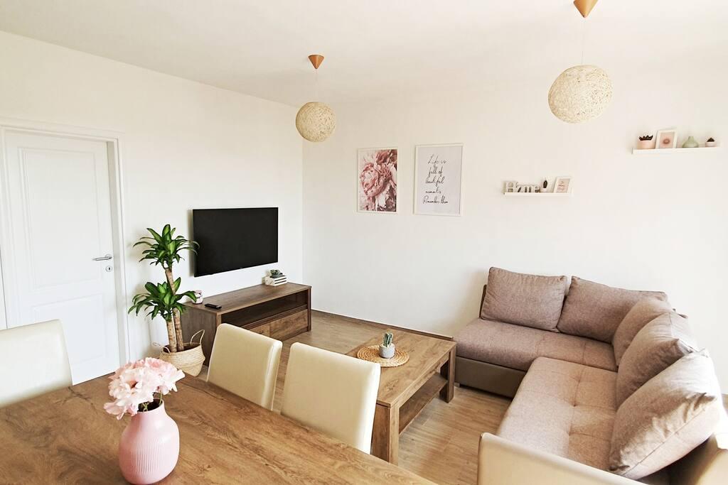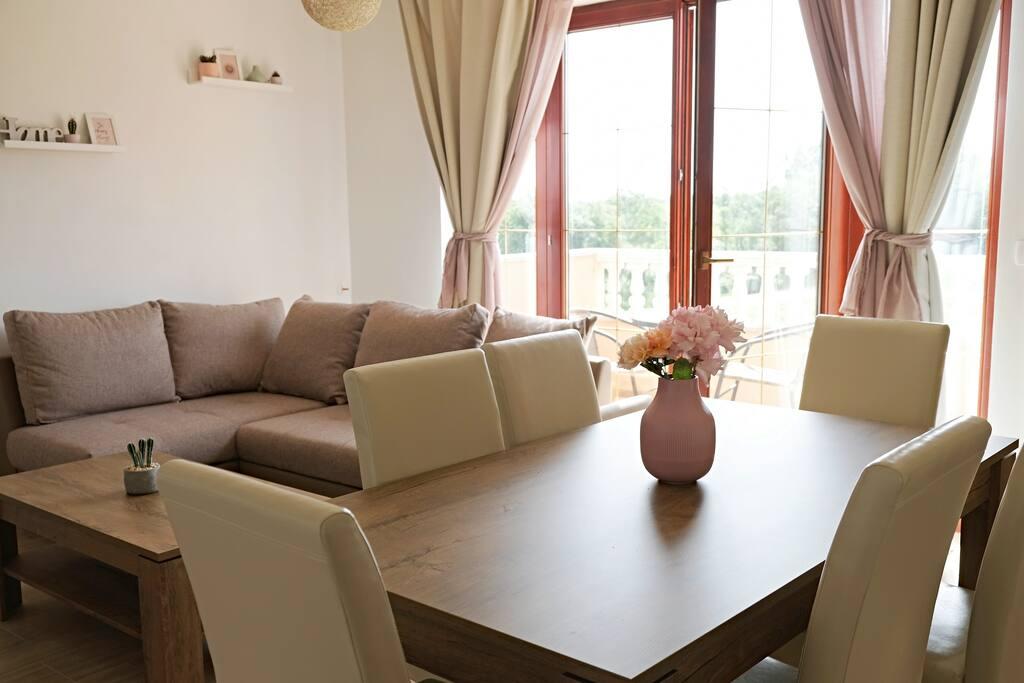 Nowe i nowoczesne apartamenty Luna i Sole znajdują się w rodzinnym domu w spokojnej miejscowości Seget. Seget to mała wioska otoczona przyrodą, 20 minut spacerem do najbliższej plaży (1 km) i 3 km od centrum Umagu. Apartamenty są w pełni wyposażone i odpowiednie dla rodzin i dłuższych pobytów. Każdy apartament składa się z w pełni wyposażonej kuchni (zmywarka, piekarnik, lodówka z zamrażarką, ekspres do kawy, czajnik), salonu ze smart TV, dwóch dwuosobowych sypialni, łazienki oraz tarasu. Apartamenty posiadają również klimatyzację, WiFi, Netflix i zadaszony parking, które są wliczone w cenę.