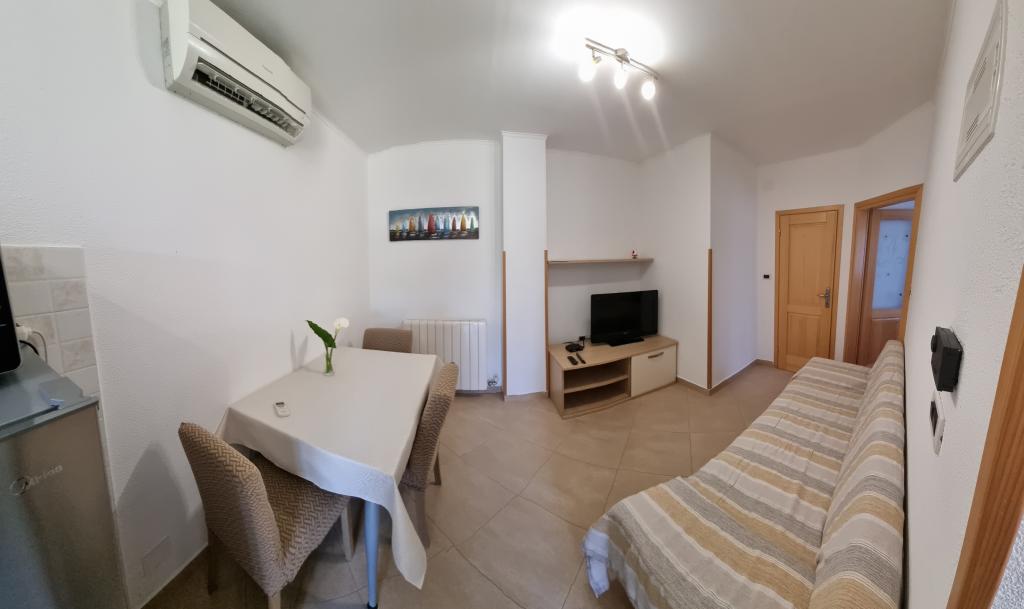 Mały, ale bardzo przytulny apartament, wyposażony we wszystko, idealny dla 2 osób, które również mają możliwość prania rzeczy za pomocą obecnej pralki. Prywatna plaża 100 metrów, bardzo ładna restauracja za rogiem i myślę, że można zarezerwować nawet w najzimniejsze miesiące, ponieważ ma ogrzewanie.