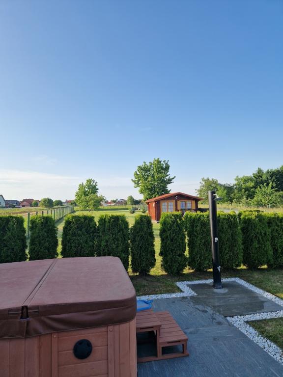 Korzystanie z jacuzzi jest wliczone w cenę pobytu i nie podlega dodatkowym opłatom. Obok domu znajduje się duży taras z grillem, leżakami, hamakiem, prysznicem solarnym i dużym, zadbanym trawnikiem. Ponadto istnieje możliwość wypożyczenia rowerów (za dodatkową opłatą), skorzystania z elektrycznych rzutek, paleniska na podwórku i innego sprzętu sportowego, piaskownicy dla małych dzieci, namiotu do zabawy... Dozwolone są małe, grzeczne zwierzęta domowe, możliwa jest dodatkowa opłata za sprzątanie. Podwórko jest całkowicie ogrodzone.