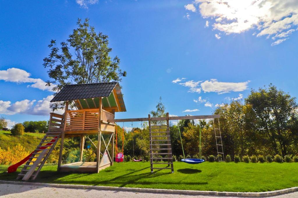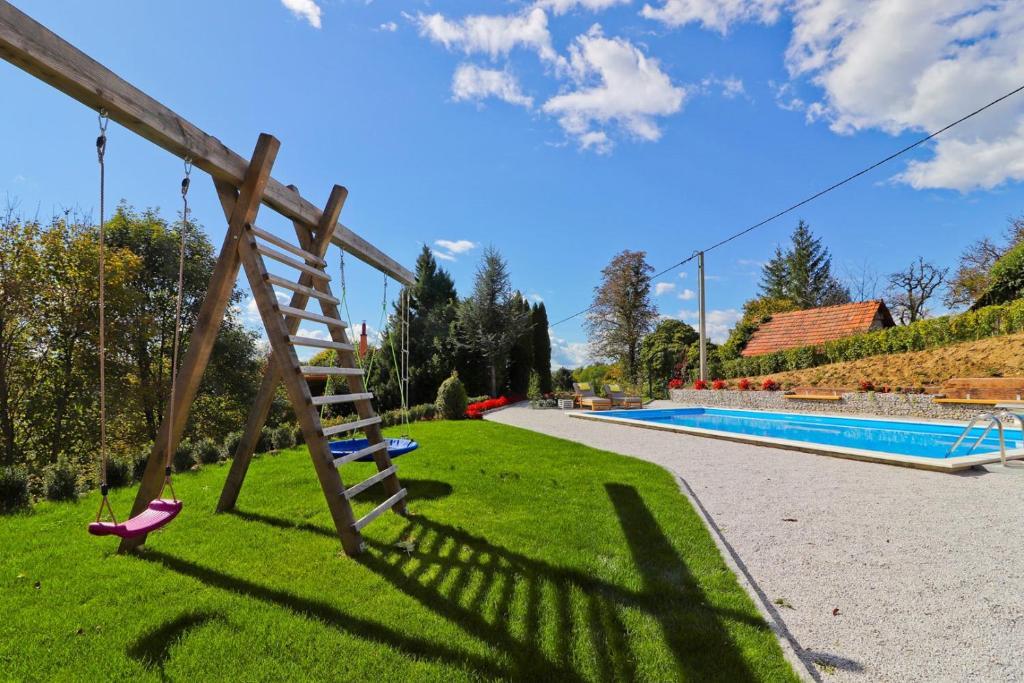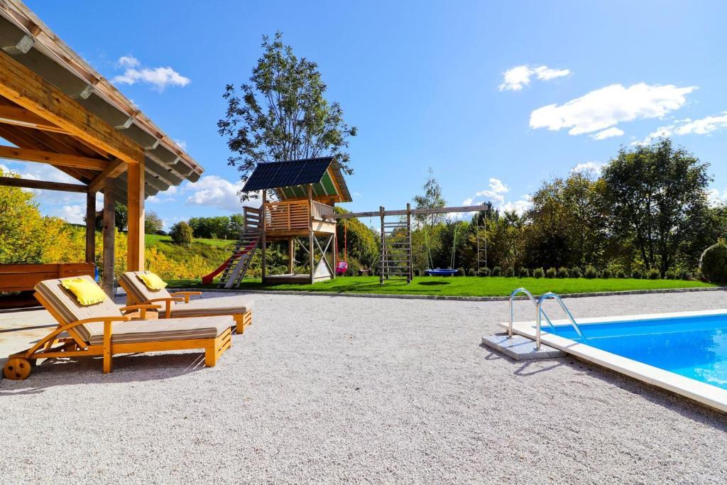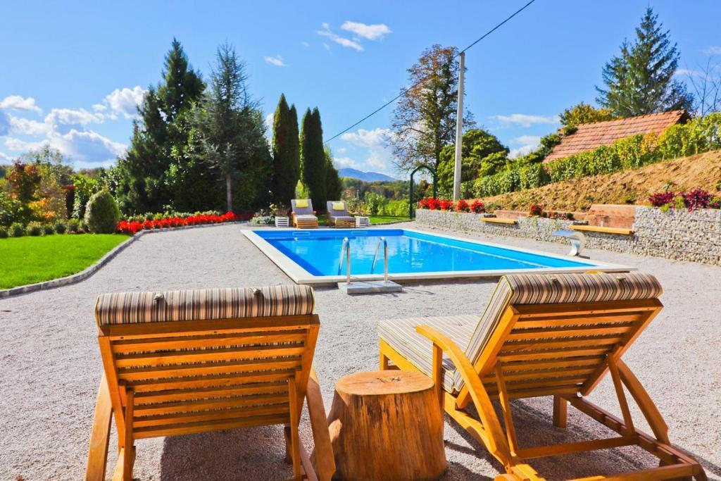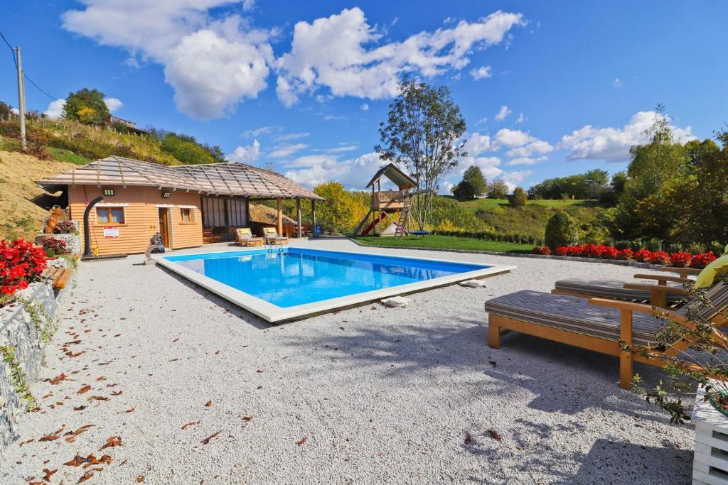 Dom wakacyjny Grga z jacuzzi i basenem znajduje się w miejscowości Gornja Voća i oferuje ogród, odkryty basen oraz widok na góry. Obiekt oferuje dostęp do balkonu, stół do ping ponga, bezpłatny prywatny parking oraz bezpłatne WiFi. Ten klimatyzowany domek oferuje 3 sypialnie, telewizor z dostępem do kanałów telewizji satelitarnej, jadalnię, kuchnię z lodówką oraz salon. Ręczniki i pościel są wliczone w cenę domku. Goście mogą korzystać z sauny w domu wakacyjnym. Pole golfowe Ptuj znajduje się 44 km od domku Grga z jacuzzi i basenem. Najbliższe lotnisko to port lotniczy im. Edvarda Rusjana w Mariborze, oddalony o 50 km.