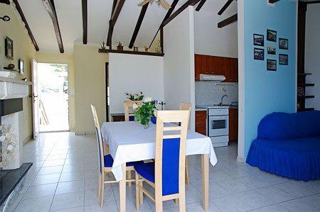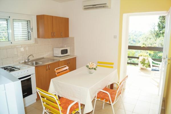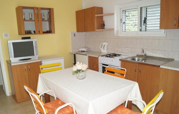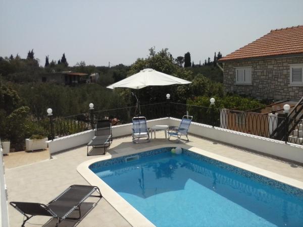 Dom jest położony w cichej części wyspy, w zatoce Tankaraca. Znajduje się 6 km od centrum miejscowości Vela Luka i 400 m od plaży. Oferuje gościom komfortowy pobyt, szczególnie dla rodzin i tych, którzy chcą uciec od zwykłych tłumów. Jest on położony w spokojnej okolicy, w otoczeniu lasów sosnowych i gajów oliwnych. W domu znajduje się basen (21m2) z tarasem słonecznym, prysznic na zewnątrz, a leżaki i kominkiem z kamiennym stole. Dla gości jest zabezpieczony za pomocą privatanog parking. Dom składa się z dwóch mieszkań. Oba apartamenty posiadają własne tarasy z widokiem na morze i piękne zachody słońca. Mieszkanie na pierwszym znajduje się na pierwszym piętrze. Posiada jedną sypialnię, pokój dzienny z dostawką, kuchnia, jadalnia i łazienka z prysznicem. Apartament 2 znajduje się na parterze. Ma trzy sypialnie, kuchnia z jadalnią oraz łazienka z prysznicem. Kuchnie w obu apartamentów są wyposażone w naczynia i sztućce. Goście mają dostęp do bezprzewodowego internetu.