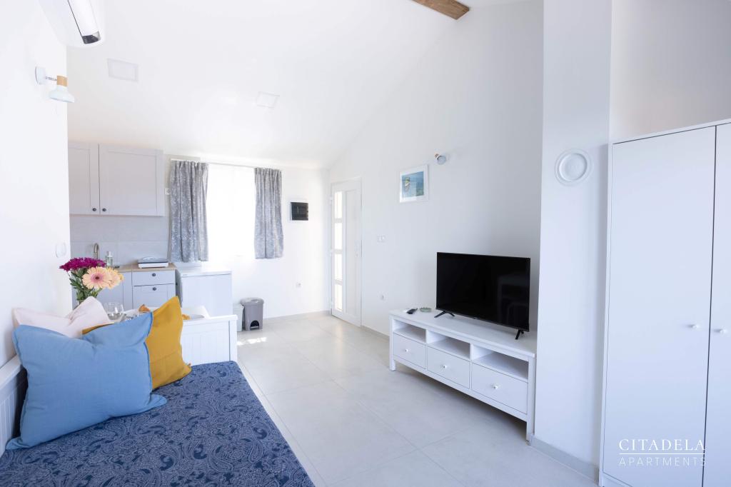 Citadela Veli Lošinj składa się z dwóch apartamentów typu studio (2+0) i sześciu apartamentów (2+1). Każdy apartament posiada własne wejście, własny taras, bezpłatny parking na terenie obiektu, Wi-Fi, telewizję satelitarną i wyposażony aneks kuchenny. Po przyjeździe obowiązkowe jest ciepłe powitanie i lekki poczęstunek. Jako gospodarze oprowadzimy Państwa po wszystkich obiektach i atrakcjach na wyspie Lošinj i zadbamy o to, aby Państwa wakacje na wyspie Lošinj były wysokiej jakości i beztroskie. !!!!!!!!!!!!!!!!!!!!! OD SEZONU 2025 ROZSZERZYLIŚMY OFERTĘ O USŁUGĘ PRZYGOTOWYWANIA ŚNIADAŃ !!!!!!!!!!!!!!!!!!!!!!!!!!!!!!!!!!!!!!!!!!!!!!!!! Śniadania serwowane są a'la carte. Każdy gość wybiera śniadanie na następny dzień. Śniadanie jest płatne na miejscu. Gość wybiera rodzaj i cenę śniadania.