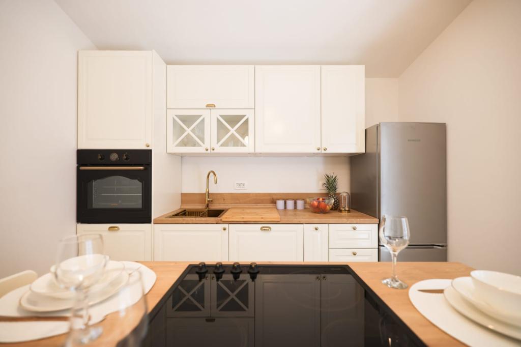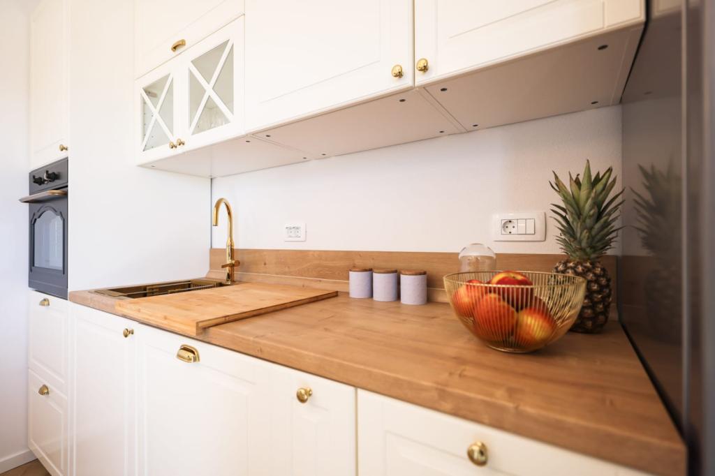 Ten klimatyzowany apartament z prywatnym wejściem obejmuje 1 salon, 1 oddzielną sypialnię i 1 łazienkę z kabiną prysznicową i suszarką do włosów. W dobrze wyposażonej kuchni Goście znajdą płytę kuchenną, lodówkę, zmywarkę i przybory kuchenne. W apartamencie znajduje się również grill. Ten apartament dysponuje balkonem z widokiem na ogród i wyposażony jest w pralkę oraz telewizor z płaskim ekranem. W jednostce znajdują się 2 łóżka.