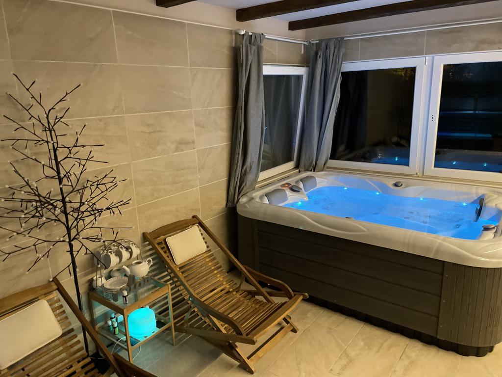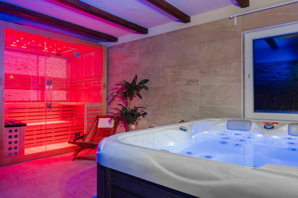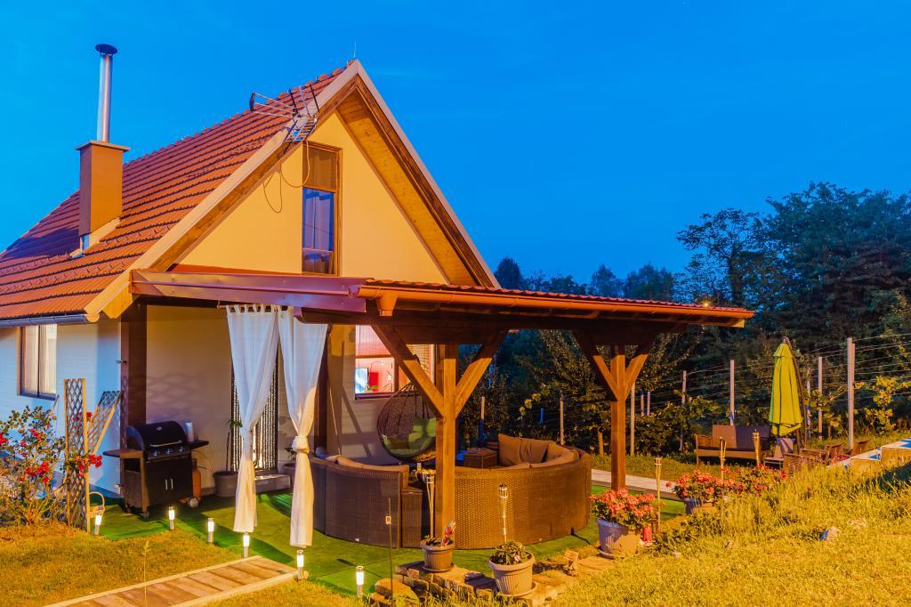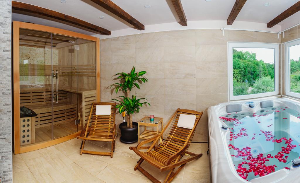 Dom wakacyjny "Wellness House Gudci" znajduje się na wzgórzach Vukomeričke gorice, w miejscowości Gudci. Otaczają go lasy, winnice i czysta przyroda. Jest pełen treści do wypoczynku i rozrywki. Dojazd na lotnisko Franjo Tuđman zajmuje 15 minut. Zawiera dużą saunę na 5 osób z miejscem do leżenia i możliwością regulacji temperatury, dzięki czemu masz zarówno fińską jak i biosaunę w zależności od potrzeb, ogrzewanie podłogowe w całej strefie wellness, basen z hydromasażem z dużą ilością dysz oraz Ozonatorem odpowiedzialnym za stałą dezynfekcję wody. Dyfuzor do aromaterapii jest dostępny dla wszystkich gości. Centrum Wellness jest dostępne 24 godziny na dobę i posiada osobne wejście. Widok jest tylko natury. Zasłony zaciemniające, oświetlenie LED, rozgwieżdżone niebo, duży prysznic z termostatem. Osłona termiczna basenu, temperatura basenu z hydromasażem może być regulowana indywidualnie. W saunie i basenie z hydromasażem dostępna jest terapia kolorami.