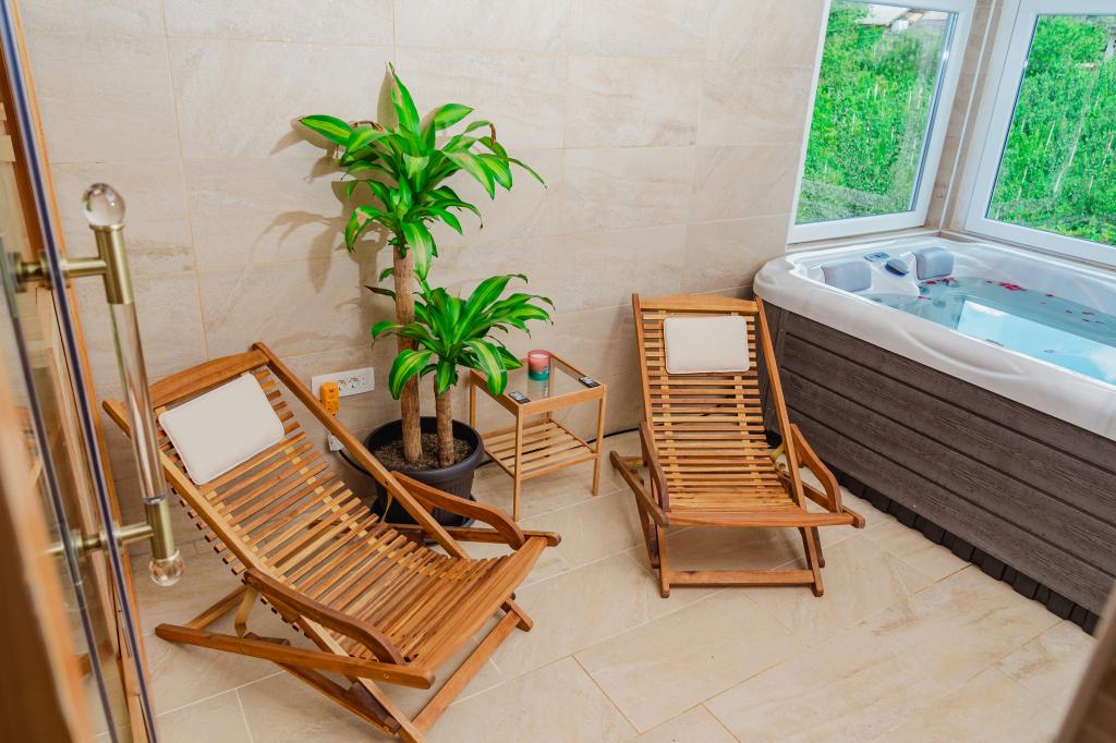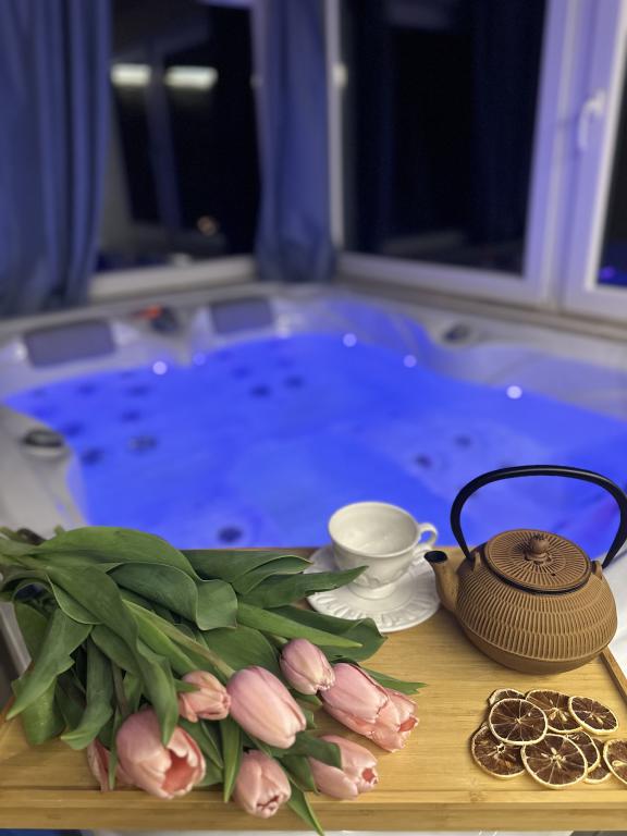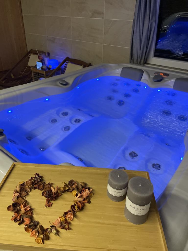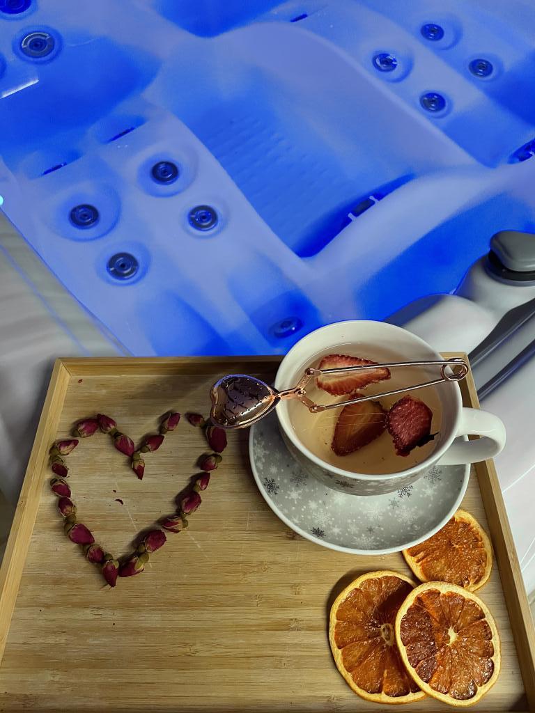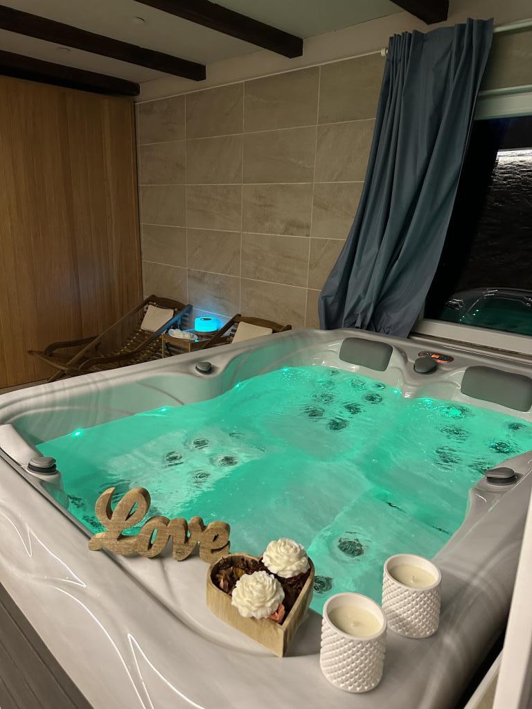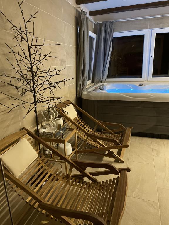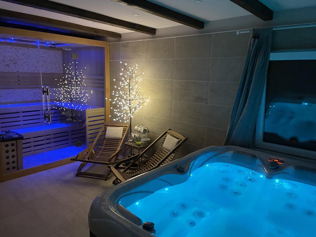 Opłata jest wliczone w cenę.dom wczasowy dom na małe uroczystości centrum spa mini wellness jacuzzi sauna fińska zadaszony taras strefa relaksu relaks leżaki spacery po lesie