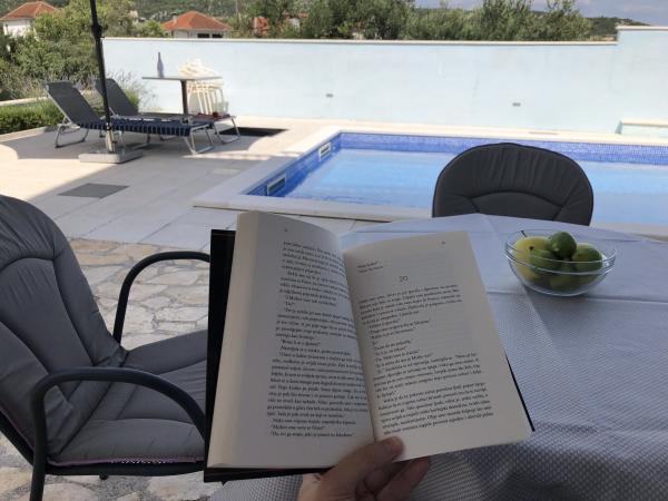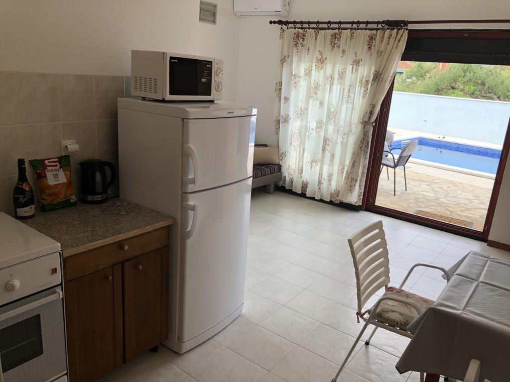 Przepiekny apartament ,bardzo zadbany przez gospodarzy i wyposazony we wszystko co potrzebne.W tym obiekcie miesci sie basen ktory jest systematycznie czyszczony przez gospodarzy.Idealne miejsce aby odpoczac i naladowac baterie.Na tarasie mozna usiasc i nacieszyc sie przepieknym widokiem na morze.Bardzo spokojna okolica ,idealna na wypoczynek i zapomnienie o zyciu codziennym .Jestem pod wielkim wrazenim bedac tutaj ,za rok tutaj wracam i polecam wszystkim szukajacym czystego apartamentu z basenem i odpoczynku w spokojnej okolicy .Do dyspozycji goscijest takze grill gdzie mozna pogrilowac.Gospodarze tego apartamentu sa bardzo goscinni,z dobrym sercem,mili i dbajacy bardzo o czystosc tego obiektu .Umilaja czas gosciom zabierajac prywatna lodzia na wycieczki.Zczystym sumieniem polecam ten apartament i wiem ze kazdy bedzie zadowolony tak hak ja po wlasnie mijajacym urlopie.