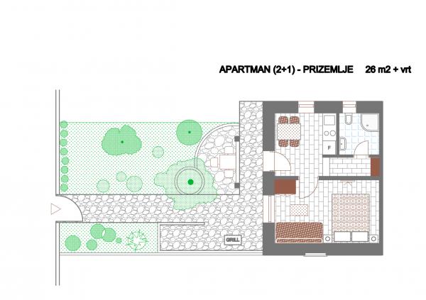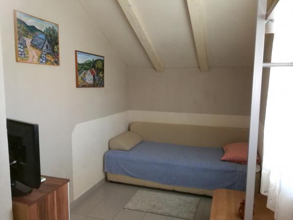 Zaadaptowany dom z kamienia autochtonicznego z osobnym dziedzińcem i wejściem, położony w centrum cichej zatoki. 80m od morza. Możliwy wynajem całego domu. Strzeżony parking dla samochodów (i przyczepa do łodzi). W pobliżu sklep i dwie restauracje.