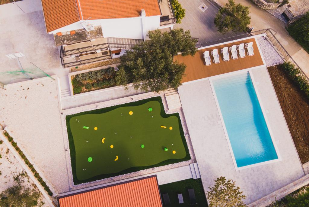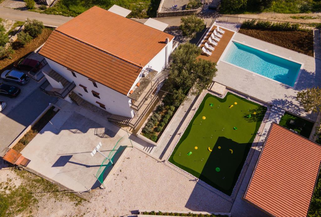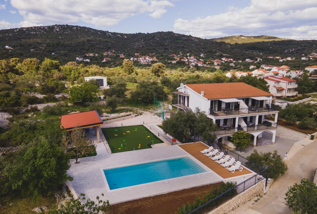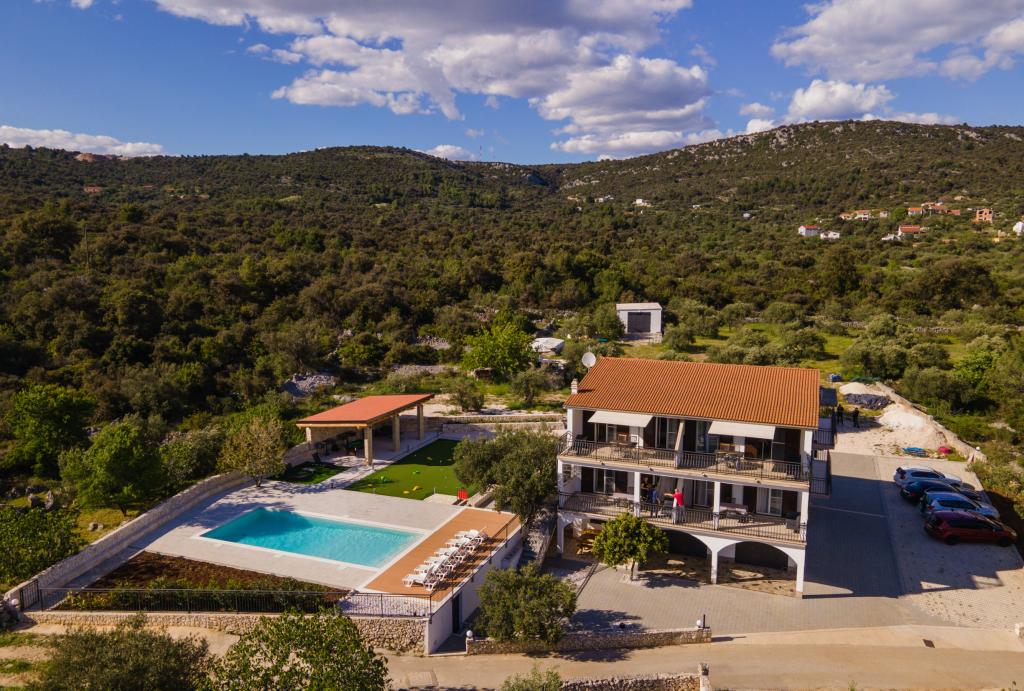 Dom rodzinny z apartamentami i ponad 20-letnim doświadczeniem w wynajmie. Znajdujemy się w małej, słonecznej wiosce rybackiej Vinišće. Budynek składa się z 5 apartamentów w jednym budynku i apartamentu typu studio bezpośrednio nad morzem. Na przestronnej działce obok domu znajduje się basen z wewnętrznymi schodkami o wymiarach 12x6 i głębokości 1-1,5 m, pole do minigolfa oraz altana z miejscami do siedzenia i bilardem. Ponadto mamy boisko do koszykówki, grill na świeżym powietrzu i parking, jeśli przyjedziesz samochodem. Wnętrze mieszkania składa się z dwóch pokoi, kuchni z salonem, łazienki oraz przedpokoju. Każdy pokój wyposażony jest w łóżka najwyższej jakości i komfortu. W kuchni znajduje się wszystko, co niezbędne do gotowania (płyta grzewcza, piekarnik, toster, czajnik, kuchenka mikrofalowa, zamrażarka, różne przybory do przygotowywania posiłków i posiłków). Z kuchni i pokoi jest wyjście na przestronne tarasy z widokiem na morze. Jeśli jesteś miłośnikiem przyrody i spokojnego otoczenia oraz najwyższej jakości usług, jesteśmy idealnym wyborem dla Ciebie.