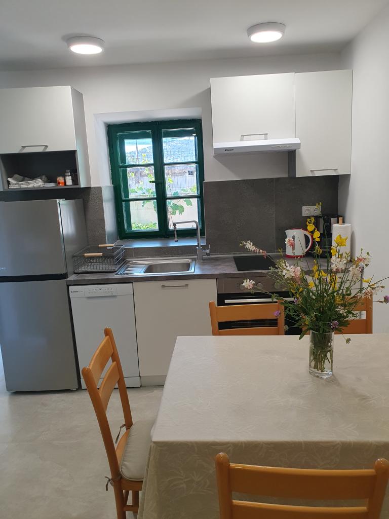 Dom wakacyjny "Kaja" położony jest w starej części małego dalmatyńskiego miasteczka. Obiekt wyposażony jest we wszystkie niezbędne urządzenia zapewniające komfortowy pobyt. Miejsce parkingowe i taras znajdują się tuż przy domu. Dom rozciąga się na dwóch piętrach, połączonych wewnętrznymi schodami. Na parterze znajduje się kuchnia z jadalnią, salon i mała toaleta. Na pierwszym piętrze znajdują się dwie sypialnie dwuosobowe i łazienka z toaletą. Jeden z pokoi posiada dostęp do balkonu, z którego roztacza się panoramiczny widok na całe miasto. Plaża znajduje się około 10 minut spacerem od domu. W podobnej odległości znajdują się inne udogodnienia, takie jak restauracje i sklepy.