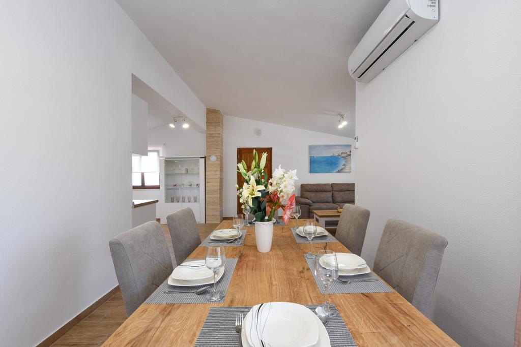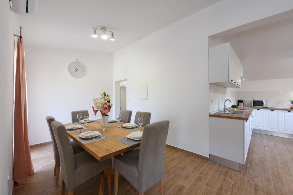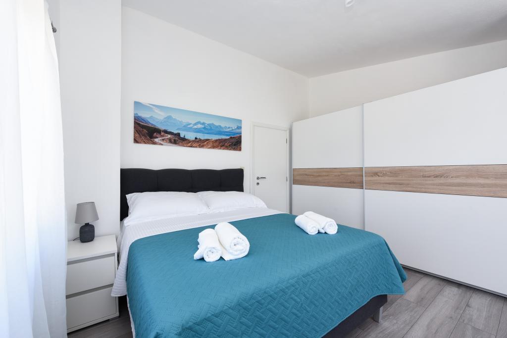 Całkowicie i nowocześnie wyposażony przestronny apartament w cichym miejscu Vinjerac, niedaleko Zadaru. Mieszkanie znajduje się w prywatnym domu na drugim piętrze z osobnym wejściem i basenem. Mieszkanie ma 2 sypialnie, dwie łazienki, salon, kuchnię i taras. Obok basenu znajduje się prysznic na świeżym powietrzu, grill na świeżym powietrzu i letnia kuchnia, która, jak wszystko inne, jest dostępna tylko dla Ciebie. Dla najmłodszych przygotowaliśmy piaskownicę z zabawkami oraz trampolinę. Plaża znajduje się 3 minuty jazdy samochodem od apartamentu i 800 m odległości powietrznej. Dostępne są również cztery rowery dla dorosłych.