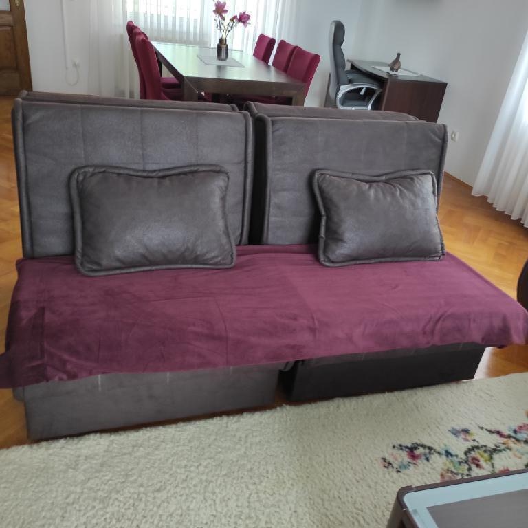 Dom wakacyjny Ruža Vinkovci to parterowy dom o powierzchni ok. 140 m2, zaledwie 10 minut spacerem do centrum Vinkovci i lampy Vinkovačka. Jest przestronny z dużą ilością naturalnego światła w cichej ulicy i spokojnej okolicy z dużym zielonym ogrodem i sadem o powierzchni ok. 1300 m2 oraz wspaniałym widokiem z tarasu, na który wchodzi się z dużego salonu o powierzchni 40 m2. Goście, którzy przebywali w domu do tej pory, mówią, że jest to oaza spokoju, w której można odpocząć od codziennego zgiełku. Dom posiada trzy przestronne sypialnie (jeden pokój z podwójnym łóżkiem i własną łazienką oraz dwa pokoje z dwoma łóżkami dla jednej osoby i druga duża łazienka. Kuchnia o powierzchni 12 m2 z nowym sprzętem AGD jest oddzielona od salonu i posiada również bezpośredni dostęp do tarasu.Dom jest wysokiej jakości z dębową stolarką wewnętrzną i parkietem, podczas gdy stolarka zewnętrzna jest plastikowa.Dom posiada centralne ogrzewanie i klimatyzację w salonie.Można zaparkować na przestronnym podwórku lub w garażu.