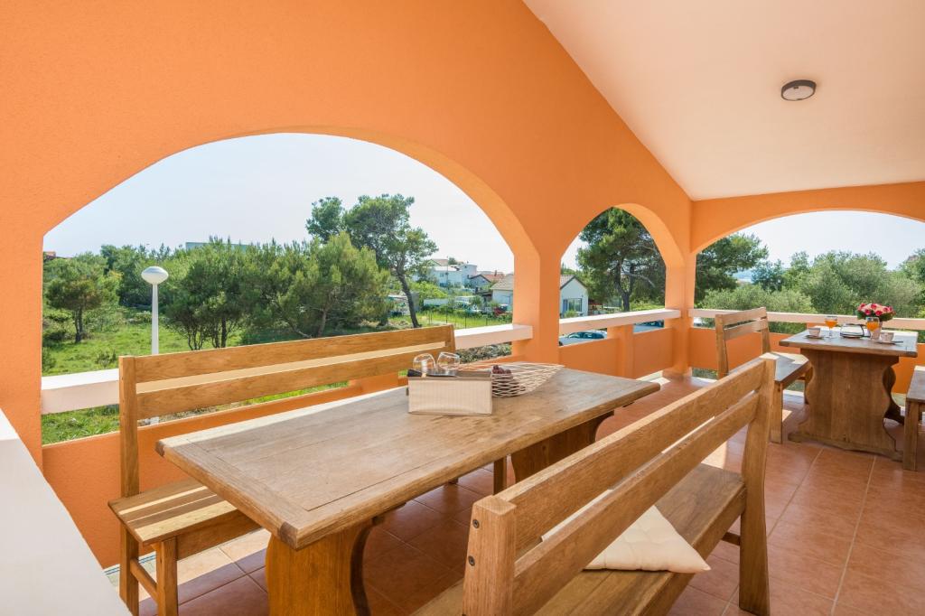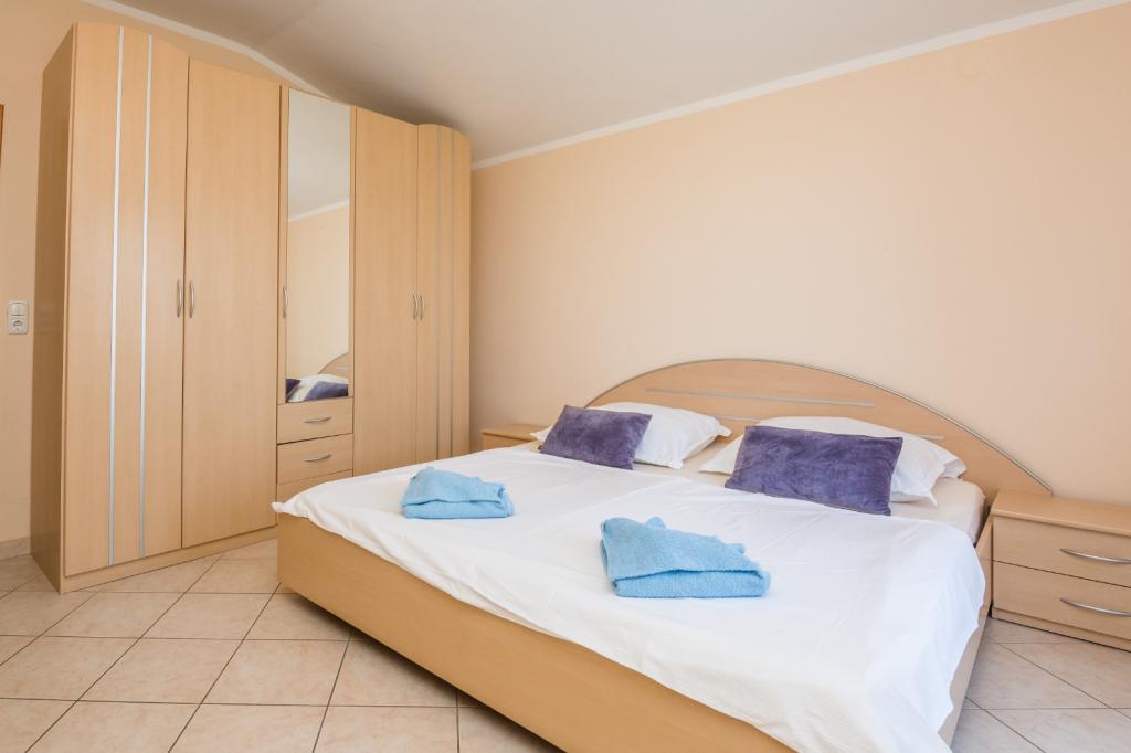 Apartament znajduje się w spokojnej okolicy wyspy Vir zwanej Virić, zaledwie 300 m od kamienistej plaży i może pomieścić 1-4 osoby. Apartament o powierzchni 45 m² znajduje się na pierwszym piętrze domu i jest podzielony na salon z kuchnią i jadalnią, sypialnię z łóżkiem małżeńskim i łazienkę z prysznicem. W salonie znajduje się rozkładana sofa dla dwóch osób. Apartament ma również dwa umeblowane wspólne balkony (10 m²). Dostępna jest klimatyzacja, bezprzewodowy dostęp do Internetu, telewizja satelitarna, grill i parking na terenie posesji.