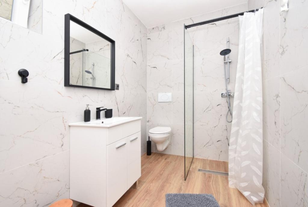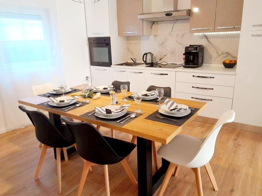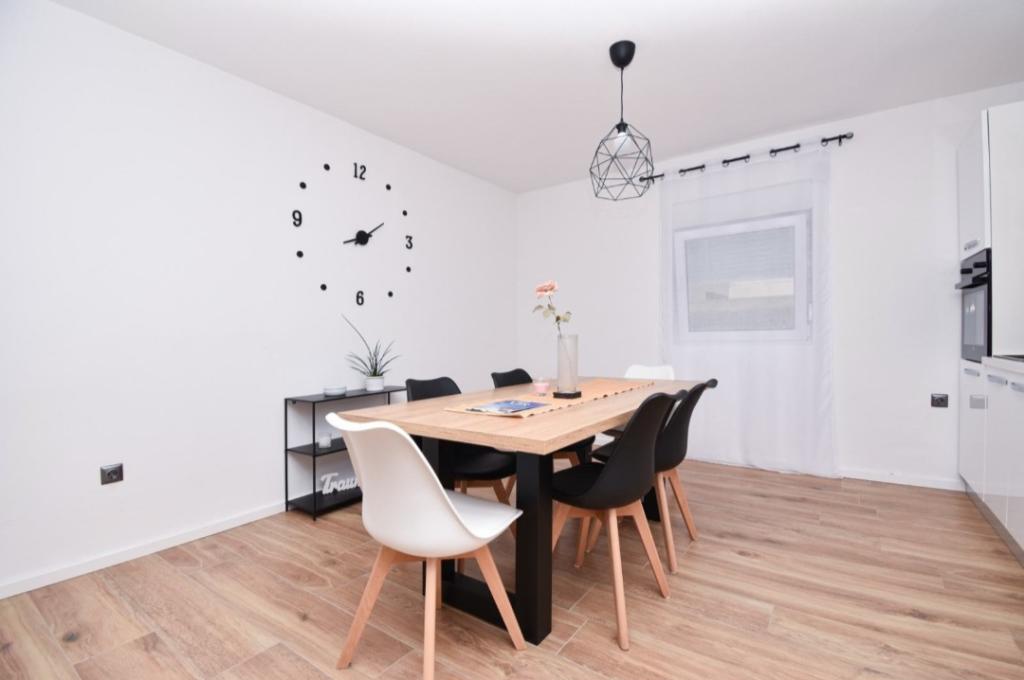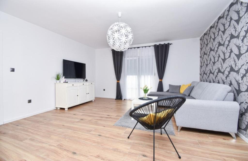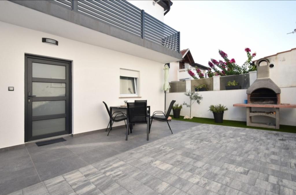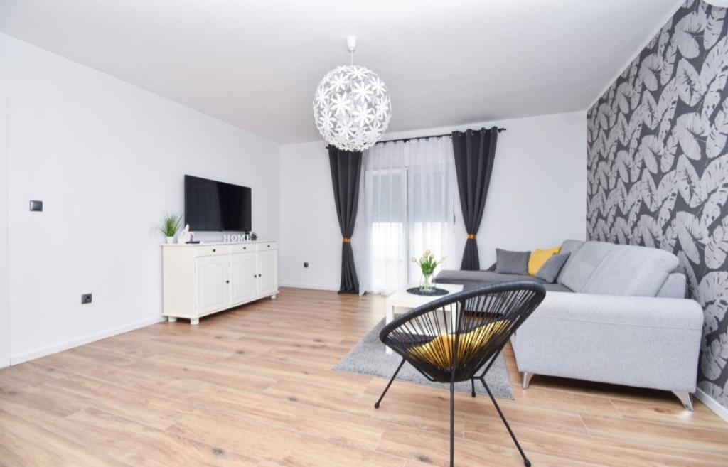 W pełni i nowocześnie wyposażone mieszkanie o powierzchni 90m2 na parterze w spokojnej okolicy. Obiekt położony jest w drugim rzędzie od morza, 40 metrów od pięknej plaży i promenady. W promieniu 50 metrów znajdują się restauracje, piekarnie i sklepy. Kuchnia wyposażona jest we wszystkie sprzęty AGD, m.in. zmywarkę, piekarnik, płytę elektryczną i czajnik. Bezpłatne WiFi i klimatyzacja. Każdy gość otrzymuje 2 ręczniki do użytku. Jeśli masz małe dziecko, w pokoju znajduje się łóżeczko dziecięce.