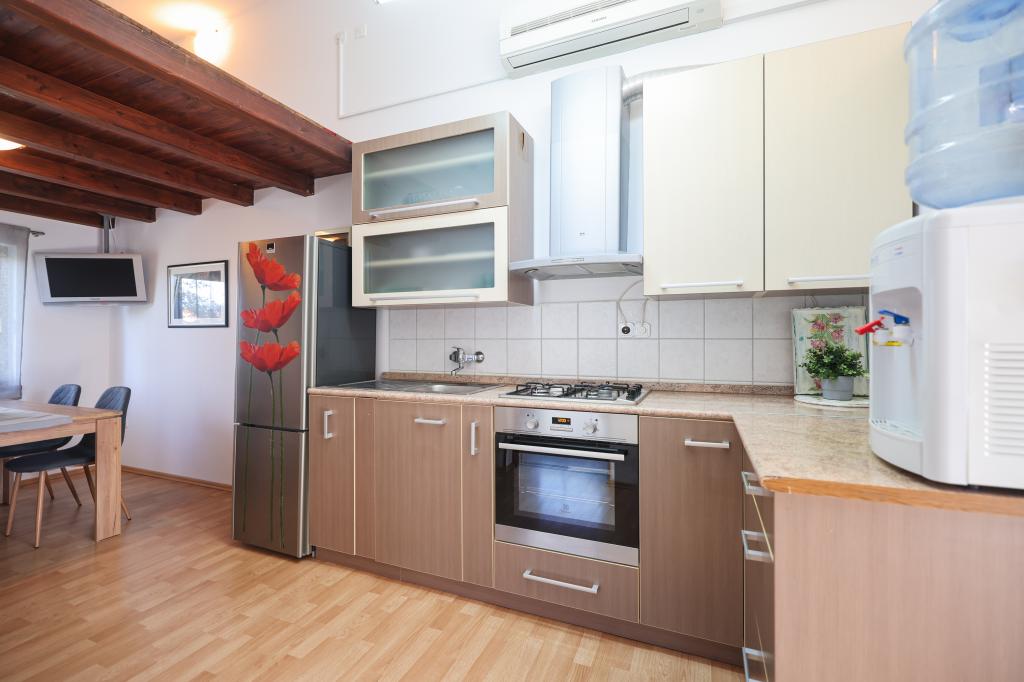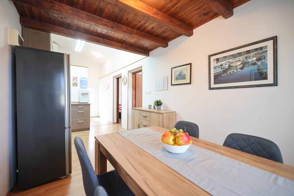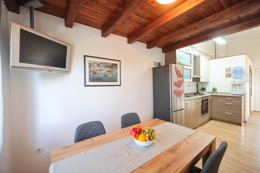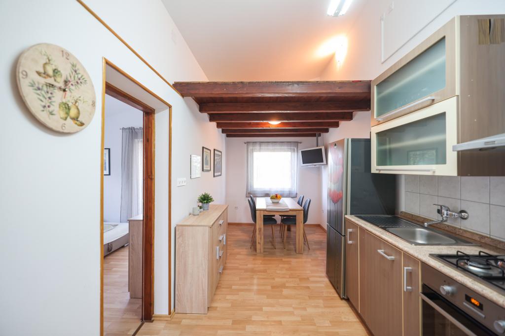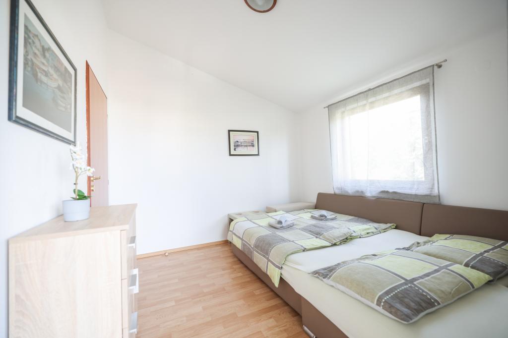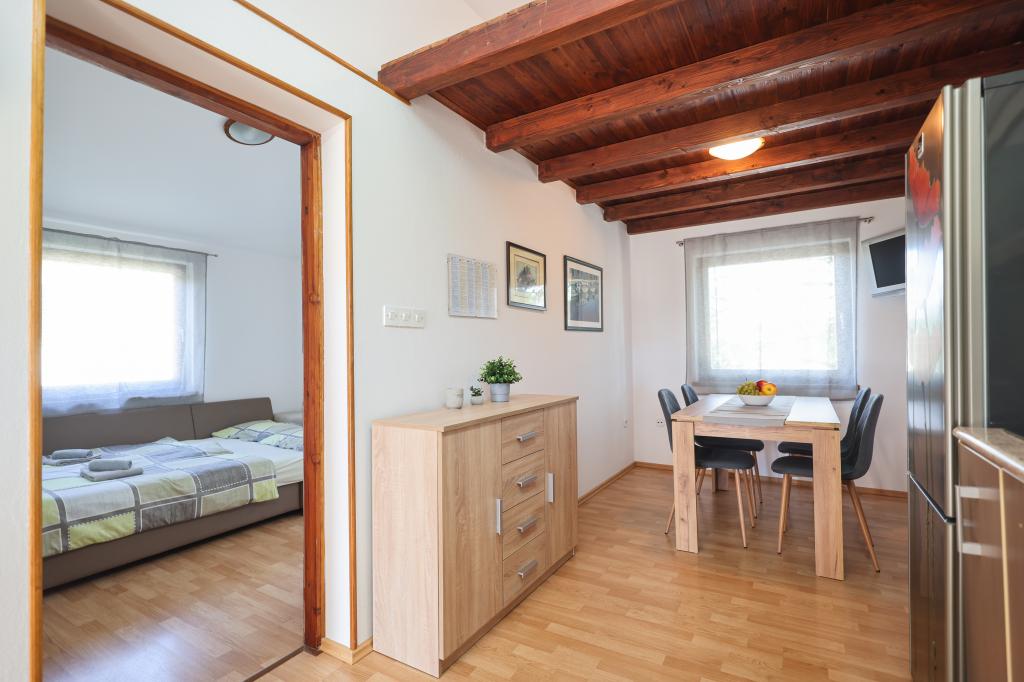 Ładnie i nowocześnie urządzony apartament dla czterech osób na wyspie Vir jest idealny na rodzinne wakacje. Znajduje się kilka minut od plaży, która jest odpowiednia dla dzieci, centrum, w którym znajduje się promenada wzdłuż wybrzeża, poczty, kościoła, dworca autobusowego który znajduje się w bezpośrednim sąsiedztwie oraz sklepu. Mieszkanie ma powierzchnię 50 m2 i posiada osobne wejście. W cenie miejsce parkingowe, klimatyzacja w całym mieszkaniu, grill, letni prysznic znajdujący się na podwórku. Składa się z dwóch sypialni, łazienki z prysznicem, kuchni z jadalnią oraz tarasu. Znajduje się w spokojnej części wyspy Vir, ale wszystko jest w zasięgu ręki, idealne na idealne wakacje.