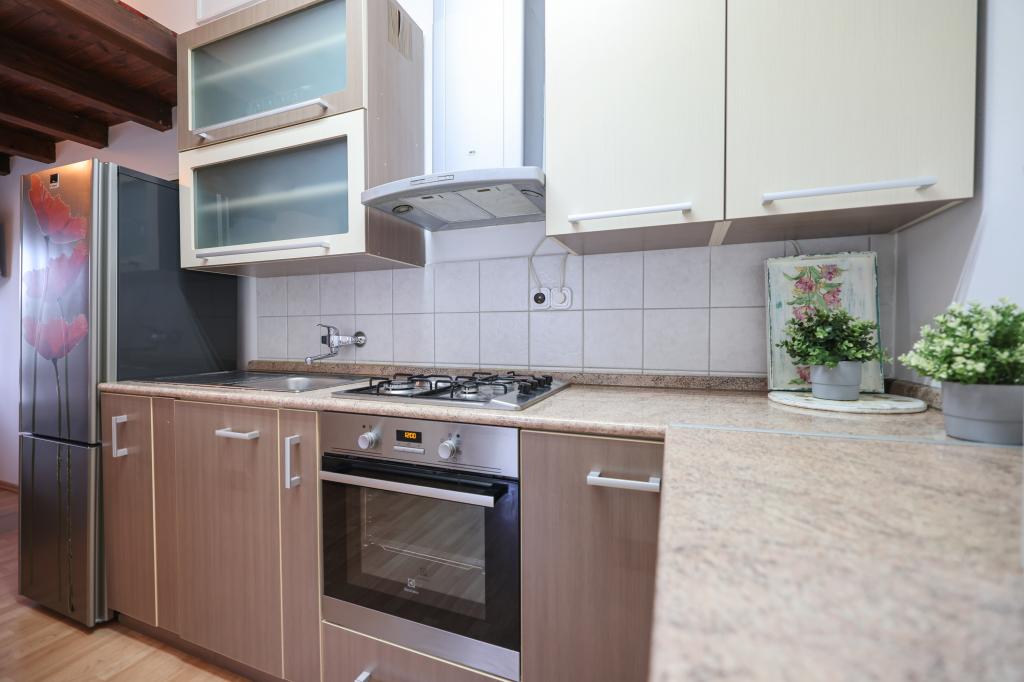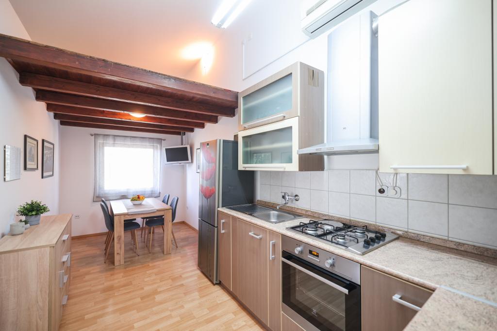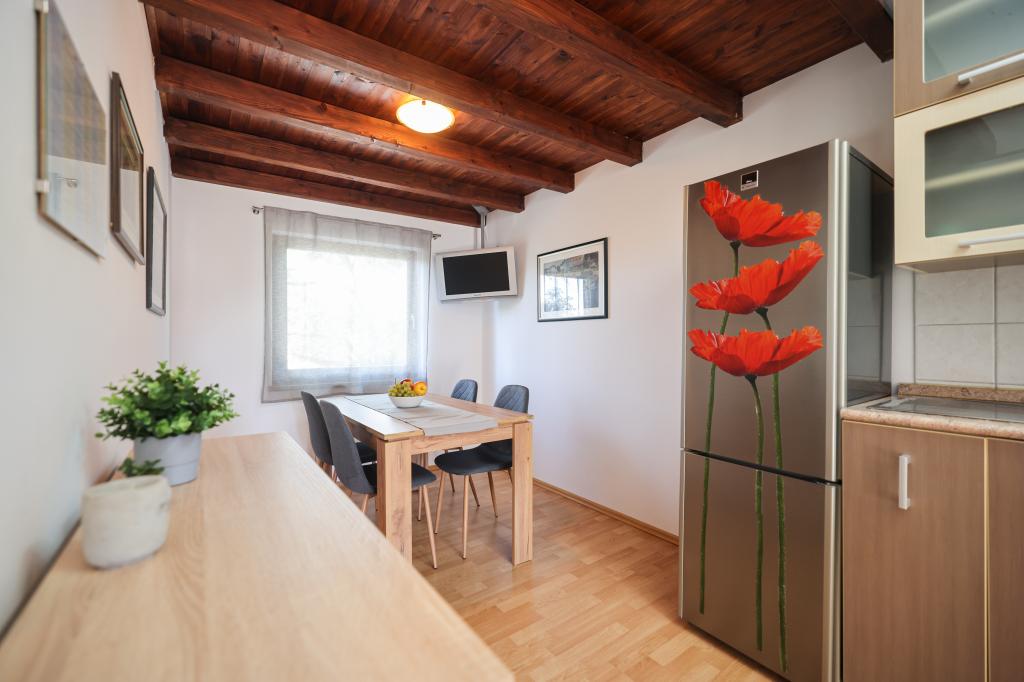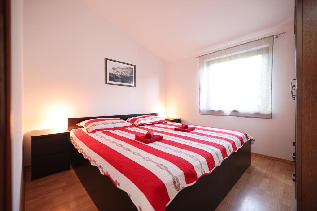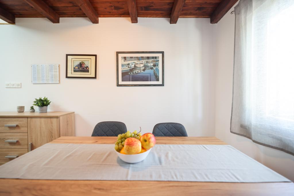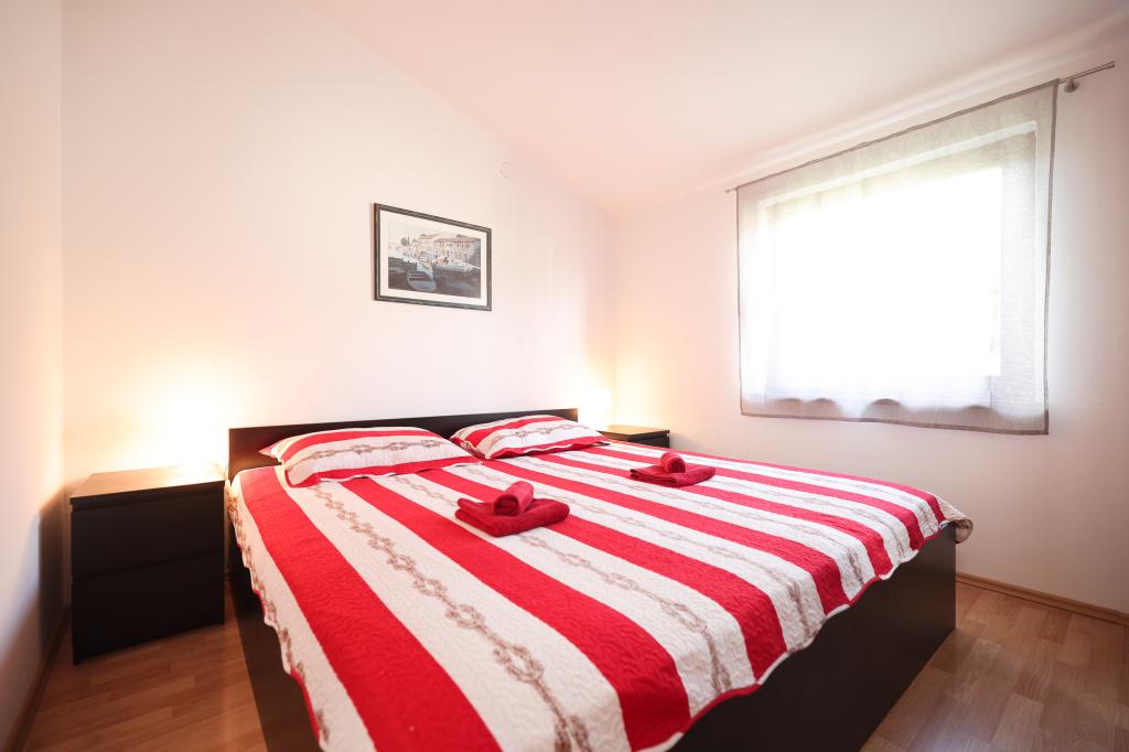 Ładnie i nowocześnie urządzony apartament dla czterech osób na wyspie Vir jest idealny na rodzinne wakacje. Znajduje się kilka minut od plaży, która jest odpowiednia dla dzieci, centrum, w którym znajduje się promenada wzdłuż wybrzeża, poczty, kościoła, dworca autobusowego który znajduje się w bezpośrednim sąsiedztwie oraz sklepu. Mieszkanie ma powierzchnię 50 m2 i posiada osobne wejście. W cenie miejsce parkingowe, klimatyzacja w całym mieszkaniu, grill, letni prysznic znajdujący się na podwórku. Składa się z dwóch sypialni, łazienki z prysznicem, kuchni z jadalnią oraz tarasu. Znajduje się w spokojnej części wyspy Vir, ale wszystko jest w zasięgu ręki, idealne na idealne wakacje.