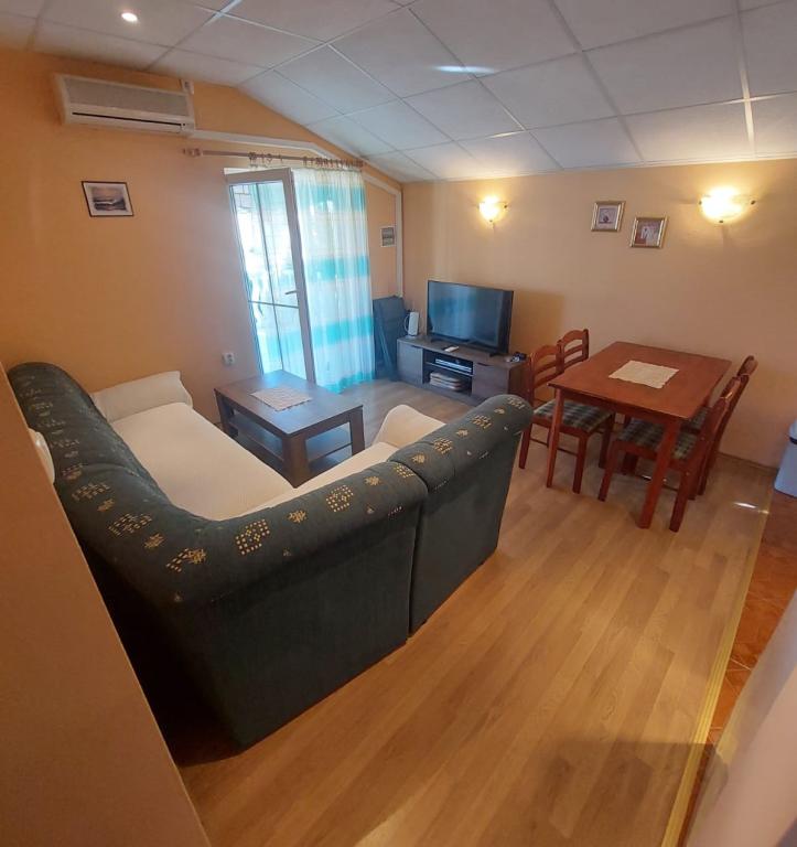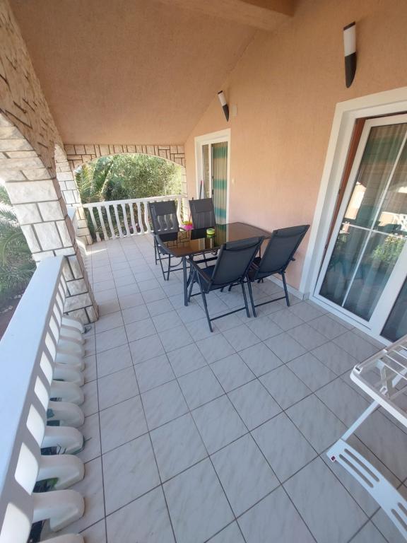 Przyjemnie urządzony apartament położony jest na wyspie Vir, która oferuje wiele atrakcji dla zabawy i jednocześnie relaksu. Podwórko jest pełne zieleni i oferuje bezpłatny parking dla Twojego samochodu. Możliwe jest również wykorzystanie sprzętu do idealnego grilla. W budynku znajduje się salon, kuchnia, łazienka, dwie sypialnie oraz przestronny taras. Mieszkanie wyposażone jest w sprzęt taki jak klimatyzacja, internet, smart TV, DVD, radio, kuchenka mikrofalowa, czajnik, lodówka z zamrażarką, suszarka do włosów itp. Plaża jest żwirkowa, w morzu znajdują się drobne kamyczki i piasek. Część plaży jest doskonale przystosowana dla dzieci. Do plaży można dojść w zaledwie kilka minut, a do centrum można dojść w 10 minut. Duży supermarket znajduje się 400 m od obiektu, a najbliższa restauracja zaledwie 300 m od obiektu.