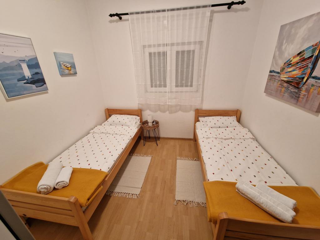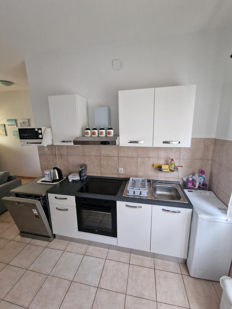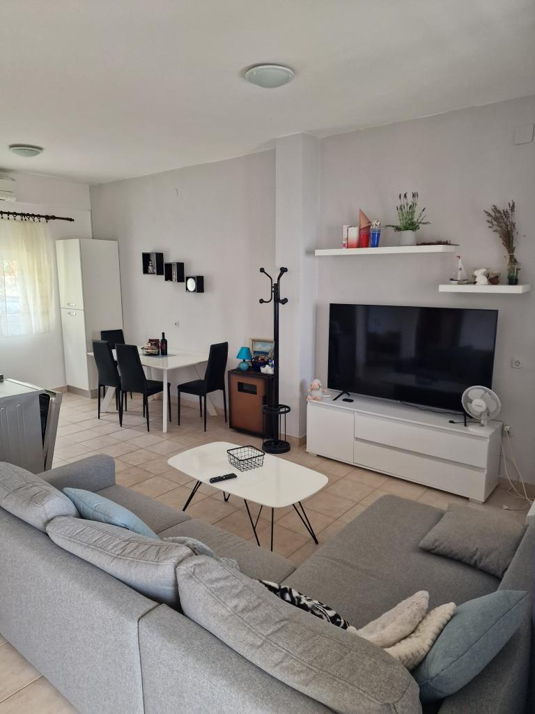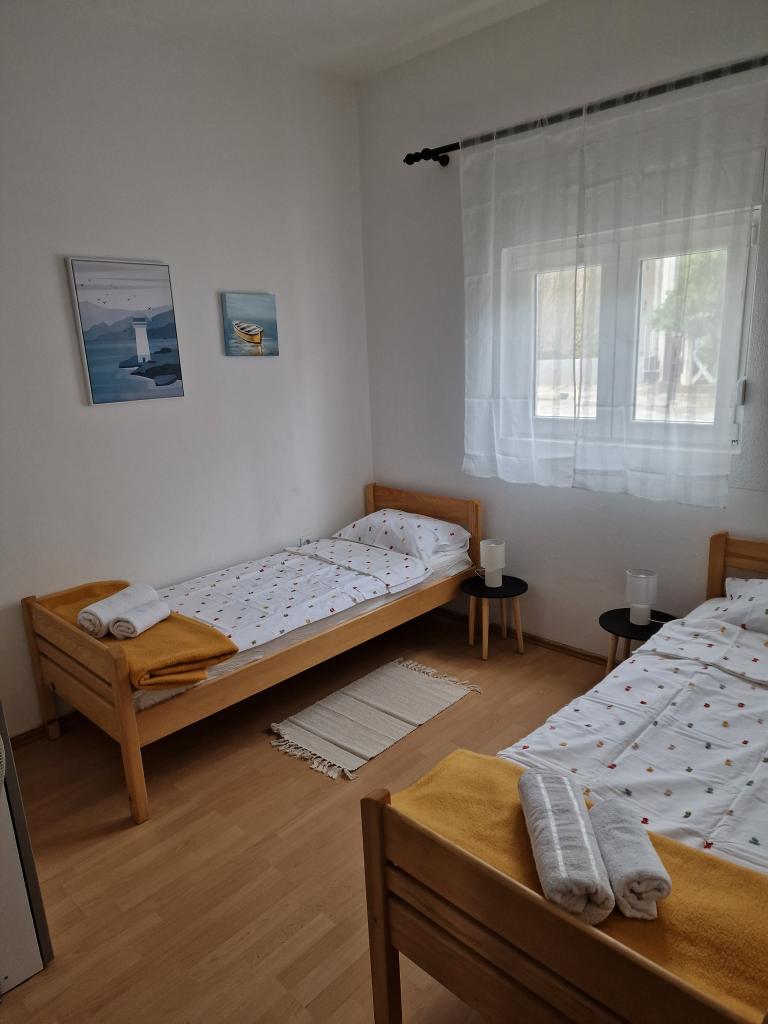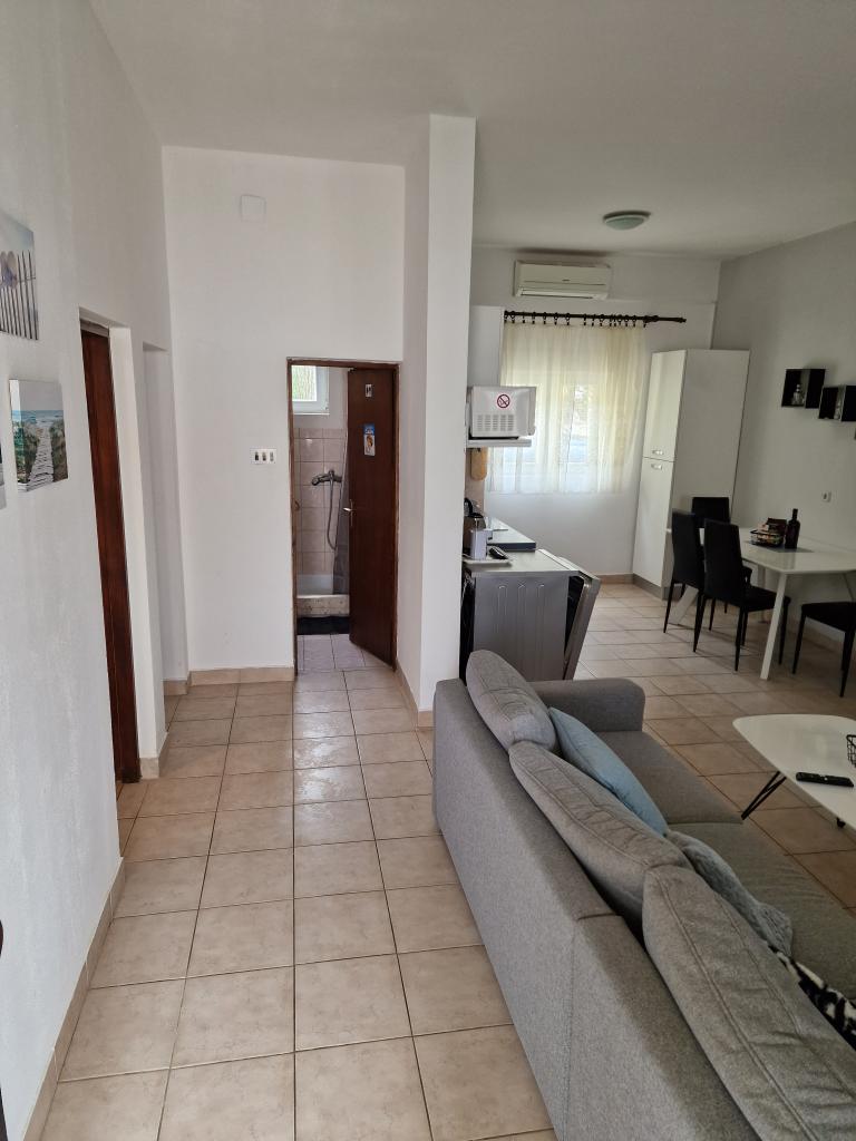 W pełni wyposażone mieszkanie w spokojnej części wyspy, która do tej pory była wykorzystywana wyłącznie na potrzeby rodziny właściciela. Składa się z 2 sypialni (łóżko małżeńskie i dwa oddzielne łóżka, które można połączyć w jedno podwójne), kuchni, jadalni, salonu z dużym telewizorem, toalety/prysznicu, loggii. Najbliższe plaże oddalone są o 10 minut spacerem, sklep o 5 minut, a centrum o 3 km, gdzie znajdują się kawiarnie, kluby, restauracje i większe sklepy. Ulica do podwórka nie jest ruchliwa i jest świetna dla dzieci, których na ulicy może być całkiem sporo. Parking jest na podwórku.
