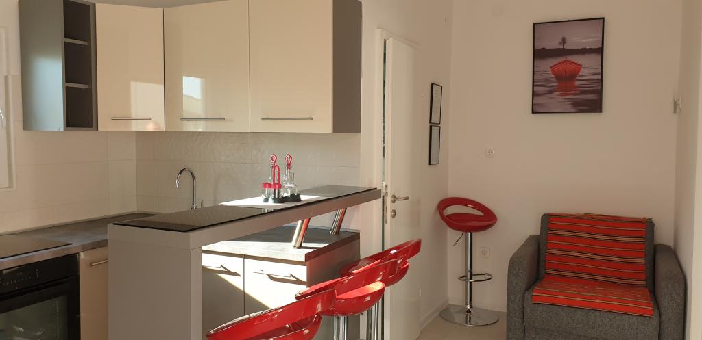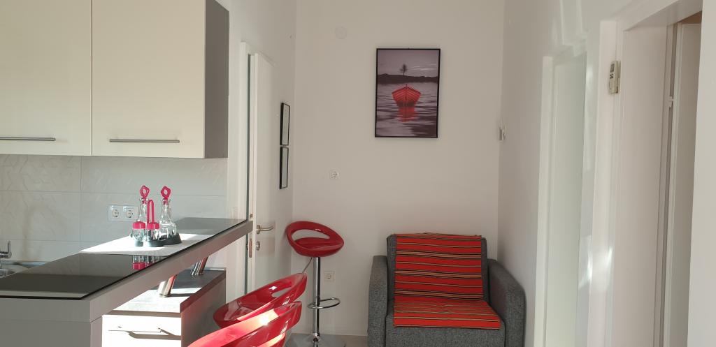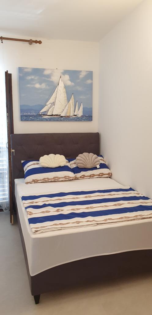 Apartament w pełni wyposażony, TV, klimatyzacja, wi-fi, płyta indukcyjna, piekarnik, mikrofala, czajnik, zmywarka. Mieszkanie znajduje się na piętrze, składa się z kuchni, łazienki i dwóch sypialni, jedna z podwójnym łóżkiem, druga z dwoma pojedynczymi łóżkami prowadzącymi na taras z widokiem na morze. Do centrum jest około 2 km wzdłuż promenady nad morzem, sklep oddalony jest o 300 metrów, a restauracja 30 metrów. Czekamy na Państwa wizytę i zawsze jesteśmy dostępni w przypadku pytań i rezerwacji.