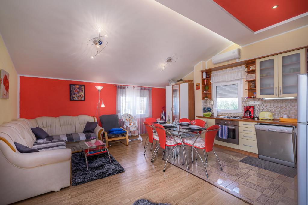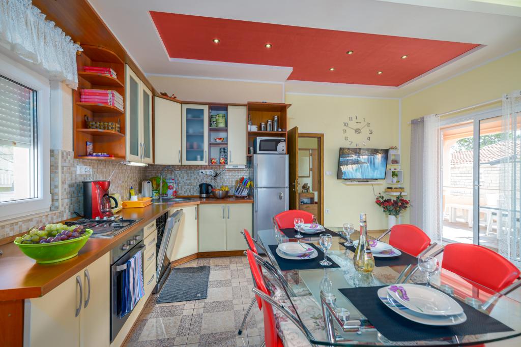 Apartament Lela znajduje się na pierwszym piętrze. Mieszkanie ma dwie sypialnie, dwie łazienki, duży salon z kuchnią i jadalnią oraz duży taras. Plaża znajduje się 100 m od apartamentu, sklep również 100 metrów. Na plaży znajduje się restauracja typu fast food i kawiarnia. Ulica jest cicha, ruch tylko dla mieszkańców ulicy. Mieszkanie ma własne miejsce parkingowe na podwórku, grill i własny duży taras.Plaża jest betonowa z kamyczkami, a 200m dalej znajduje się zatoka z piaszczystą plażą. Sklep i piekarnia 100m od apartamentu Apartament posiada wodę miejską, klimatyzację oraz bezpłatny dostęp do internetu. Zorganizowane wycieczki przez biuro turystyczne Vir do wodospadów Krka, Kornati, Jezior Plitwickich i innych ciekawych miejsc. Wypożyczalnia rowerów, motorówek i łódek Szkoła nurkowania. Chcemy, abyś czuł się komfortowo w swoim mieszkaniu w swoim domu, a pobyt w Vir pozostanie w miłych wspomnieniach :) Czekamy na Twoje przybycie