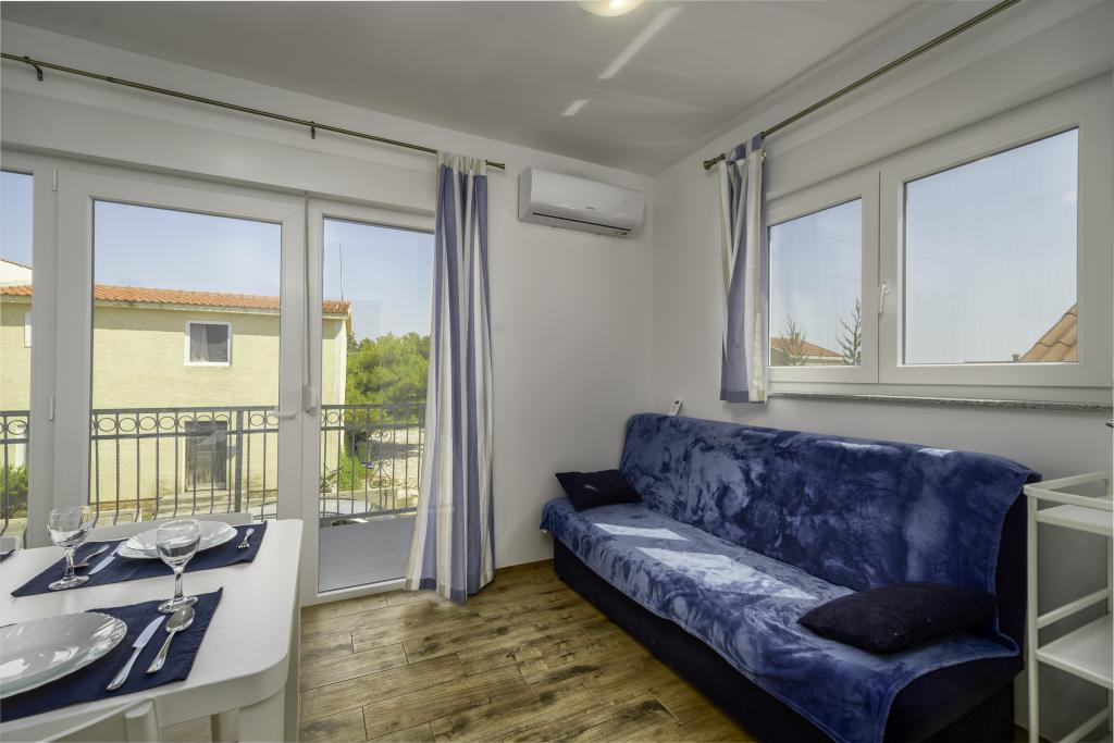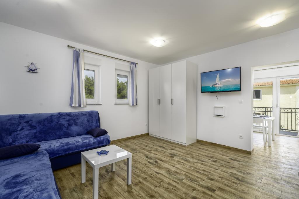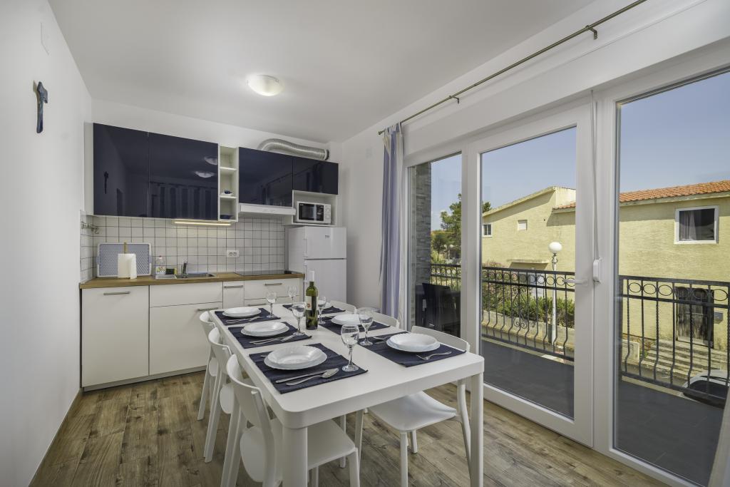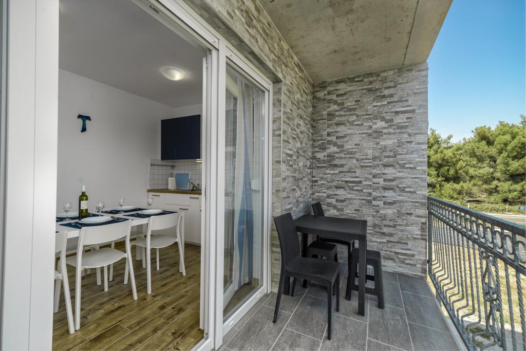 Apartament Rebecca znajduje się w nowo wybudowanym budynku na pierwszym piętrze z przestronnym balkonem. Jest w pełni wyposażony, aby zapewnić przyjemny pobyt (klimatyzacja, smart tv, spiżarnia we wszystkich oknach, zmywarka), miejski system wodociągowy. Obiekt znajduje się na południowej stronie wyspy, 5 min. chodzić od plaży. Miejsce parkingowe jest zapewnione, wyspa jest połączona z lądem mostem.