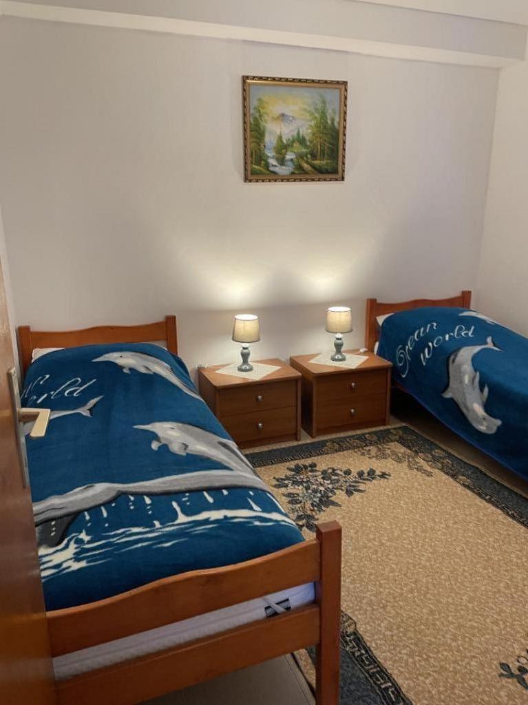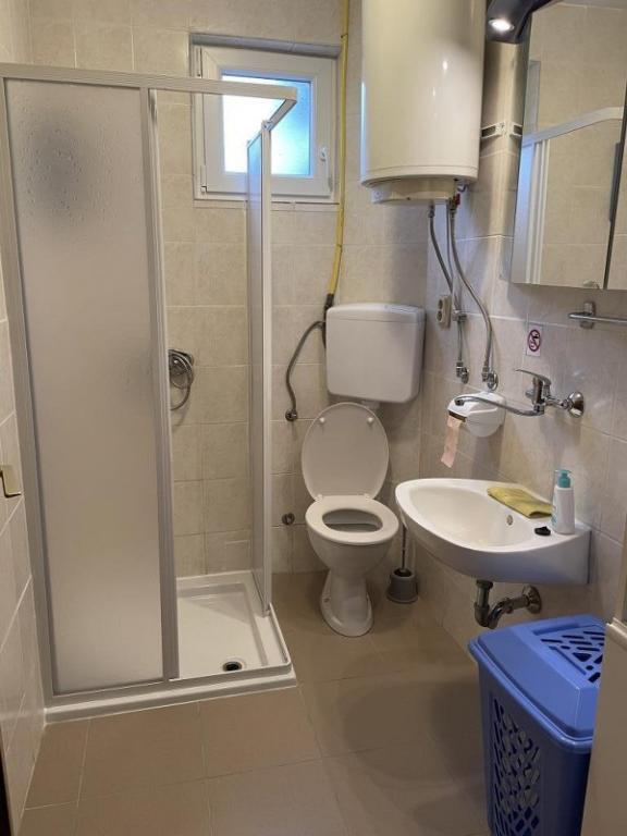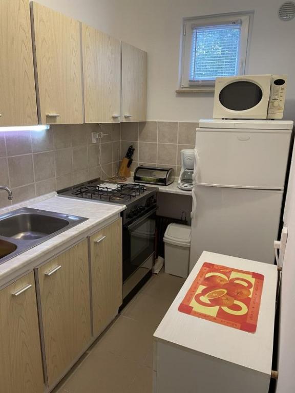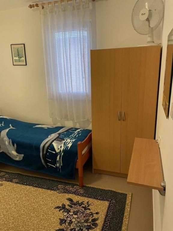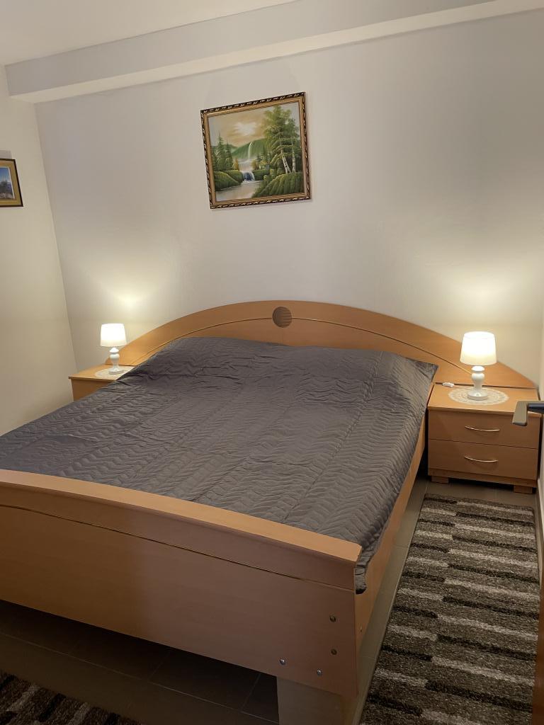 Apartament z 2 gwiazdkami, klimatyzowany, cztery łóżka, dwa pokoje. W każdym pokoju są dodatkowe wentylatory dla tych, którym nie przeszkadza klimatyzacja. Pokój dzienny, kuchnia, taras z grillem na świeżym powietrzu i prysznicem na świeżym powietrzu, łazienka, apartament jest w pełni umeblowany z możliwością dostawki. Możliwość korzystania z używanej pralki Parking zacieniony dla aut.Prosimy gości o przywiezienie własnych ręczników, reszta należy do nas.Apartament jest odpowiedni dla rodziny do 4 osób, w tym dzieci. Apartament znajduje się na osiedlu rodzinnym, w apartamencie mogą przebywać tylko goście, dla których apartament jest wynajmowany. Wynajmujemy tylko jedno mieszkanie, gwarantujemy spokój i prywatność!