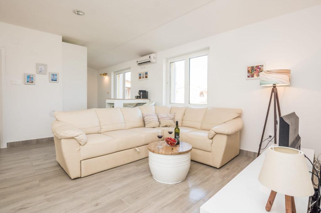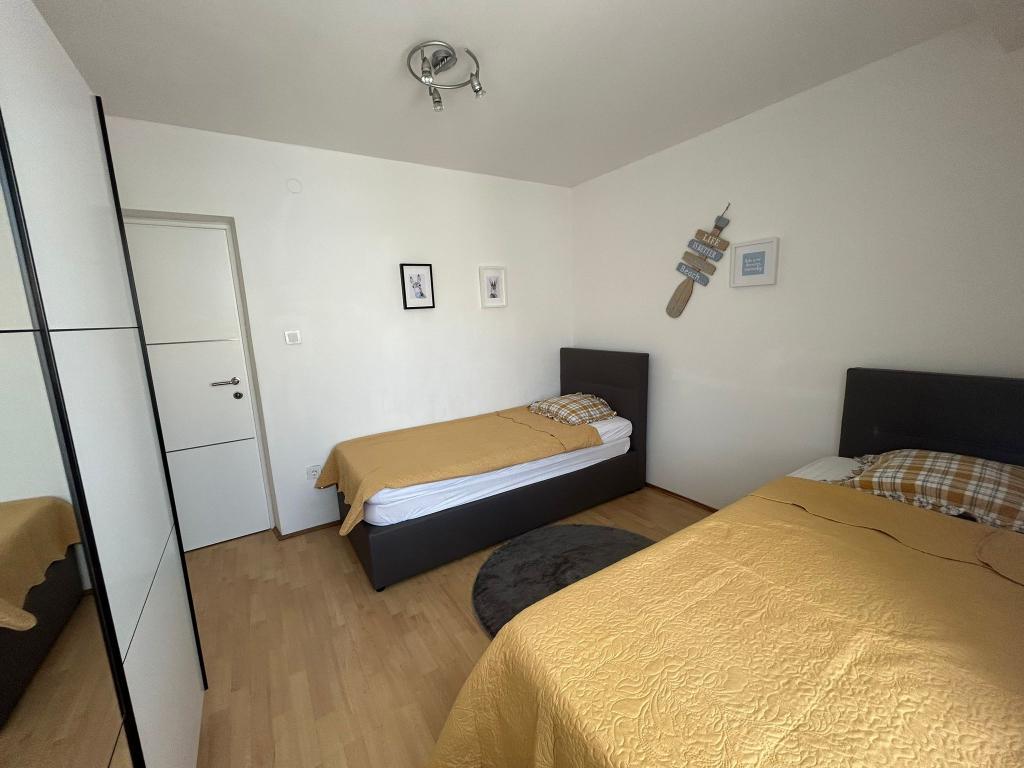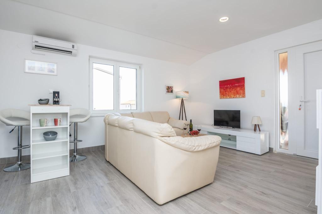 Nowocześnie urządzony apartament z dwiema sypialniami, salonem, wyposażoną kuchnią (ekspres do kawy, czajnik, zmywarka), klimatyzacją, WiFi oraz dużym i przestronnym tarasem. Na terenie budynku znajduje się miejsce parkingowe, a także grill. Apartament położony jest w bezpośrednim sąsiedztwie plaży (200 m), sklepów (200 m) i restauracji (100 m). Odległość do centrum Viru wynosi 2,4 km.