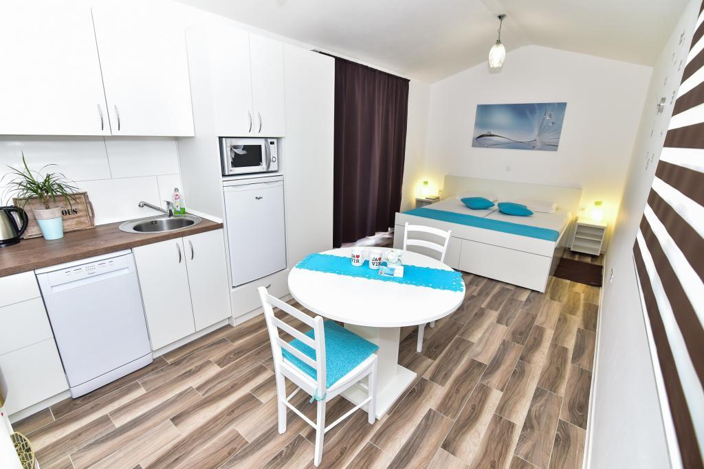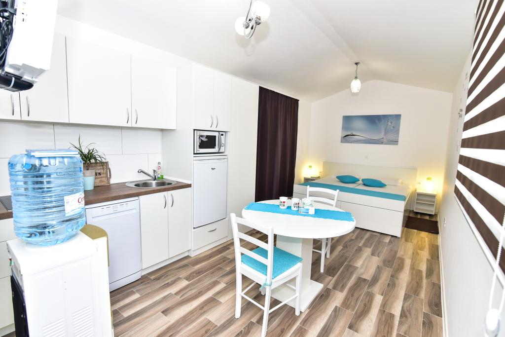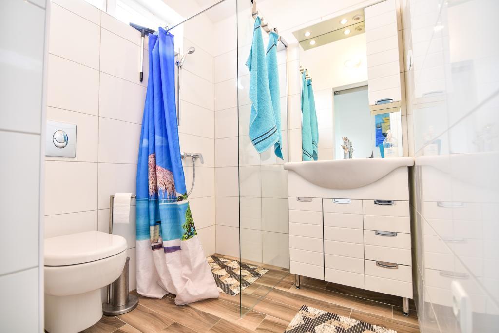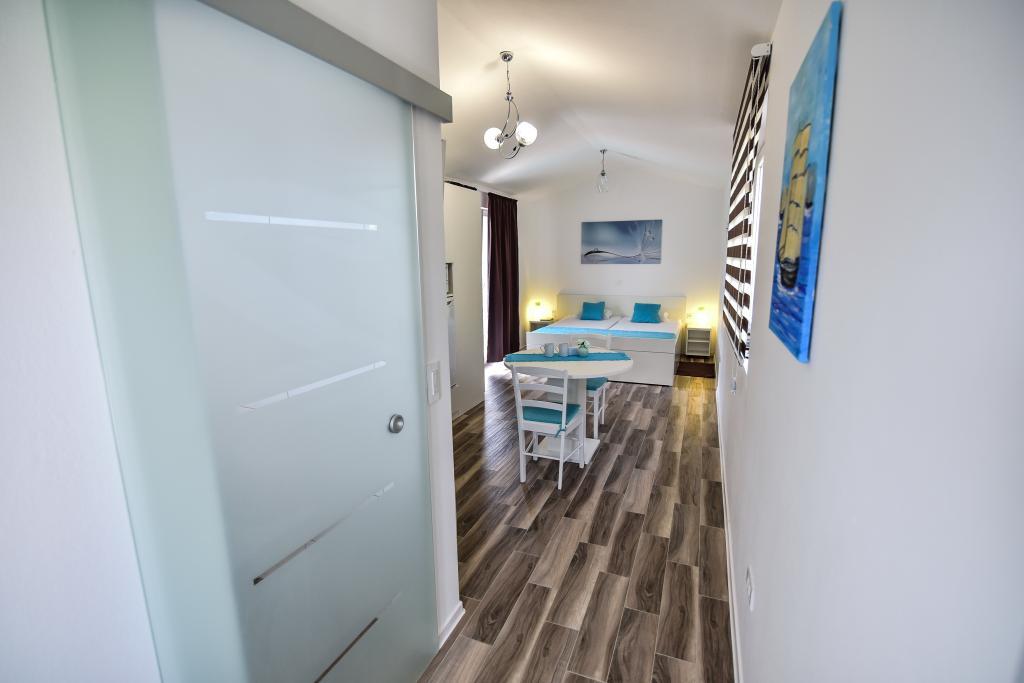 Mieszkanie za każdą rekomendację, która nas zachwyciła. Pięknie urządzony, nowy i bardzo czysty i zadbany, naprawdę godny pochwały. Taras jest cudowny, wieczorem z kieliszkiem wina i rozgwieżdżonym niebem nad głową bezcenne. Zakwaterowanie i gospodarze są wspaniali, wspaniałe powitanie, które na zawsze pozostanie w naszej pamięci. Jedna wspaniała rodzina, która wita cię z otwartymi ramionami, uśmiechniętymi twarzami i pełnym sercem. Jeśli masz małe dziecko, nie musisz martwić się o ciszę i spokój. Wszystko jest w zasięgu ręki sklepy, piekarnie, restauracje, kawiarnie, plaże, wyjścia... Byliśmy bardzo zadowoleni i polecamy to zakwaterowanie każdemu.