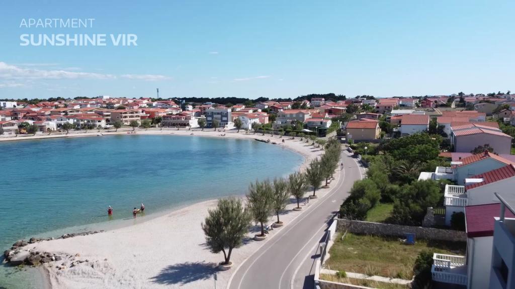 Dwupokojowy apartament „Sunshine” na wyspie Vir. Apartament znajduje się przy cichej ulicy, 90 metrów od plaży. Plaża ma piaszczyste dno, dzięki czemu jest idealna dla rodzin z dziećmi. Sklep, piekarnia i kawiarnia znajdują się w odległości 50 metrów. Do dyspozycji Gości jest jedno miejsce parkingowe, Wi-Fi, klimatyzacja. Moskitiery we wszystkich drzwiach i oknach. Godzina przyjazdu: od 14:00, godzina wyjazdu do 9:00.