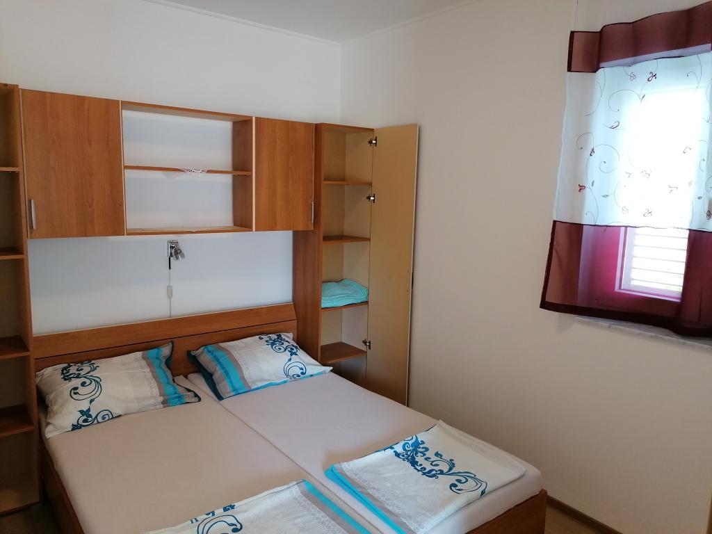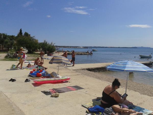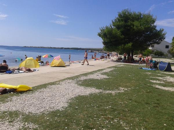 Witamy na wyspie Vir w mieszkaniu rodziny Mužina, która oferuje swoje usługi od wielu lat. Dom znajduje się na południowej stronie wyspy, w spokojnej wiosce Luka, idealnej dla par z dziećmi, które mają własną przestrzeń wokół domu do zabawy i bezpieczną ścieżkę na plażę. Do centrum wyspy dotrzesz z apartamentu promenadą wzdłuż morza. Mieszkanie jest w pełni wyposażone i klimatyzowane. Dom jest podłączony do wody miejskiej i kanalizacji. Posiada dwie sypialnie z podwójnym łóżkiem (jedna z wyjściem na taras i TV), kuchnię, łazienkę oraz taras ze stołem i krzesłami. Bezpieczne korzystanie z Internetu. Mieszkanie jest idealne dla czterech osób dorosłych lub rodziny z dwójką lub trojgiem mniejszych dzieci. To jest 5 minut spacerem do plaży i 2 minuty spacerem do supermarketu. Korzystanie z grilla na świeżym powietrzu, który znajduje się w cieniu dużego drzewa figowego, a także parking strzeżony. Możliwość korzystania z prysznica na zewnątrz.
