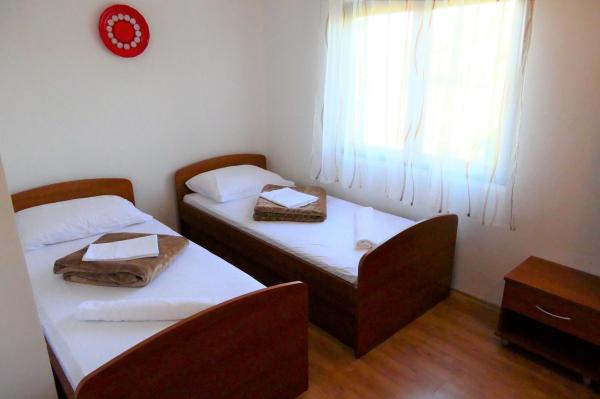 Znajdujemy się w strefie Radovanjica około 300 metrów od plaży w zatoce Radovanjica. Jesteśmy w stanie zaoferować apartamenty do wynajęcia w oddzielnym obszarze 30m2 oraz taras 9m2. Mieszkanie jest nowo wybudowany i nowo wyposażony: podwójne łóżko dodatkowe, łazienka, kuchnia, TV, klimatyzacja. Posiadamy również duże mieszkanie 70m2 z tarasem 10m2. Apartament posiada osobne wejście i składa się z pokoju dziennego połączonego wspólnego z kuchnią, łazienką i tarasem oraz trzy sypialnie, które mogą być wynajmowane i niezależnie.
