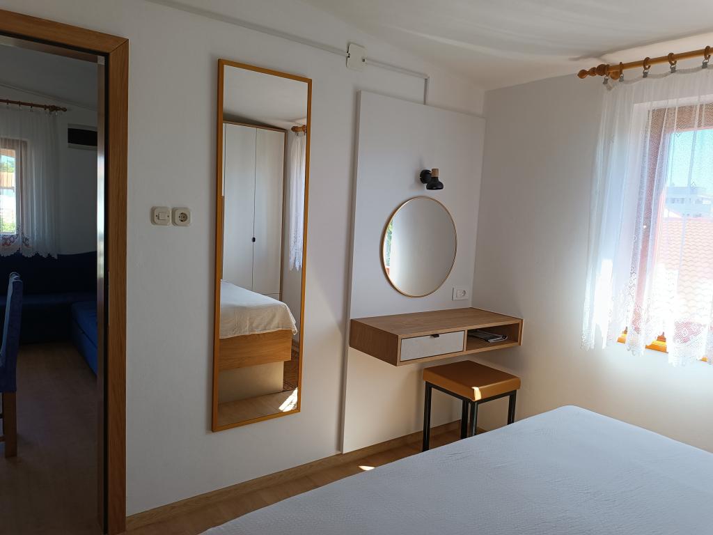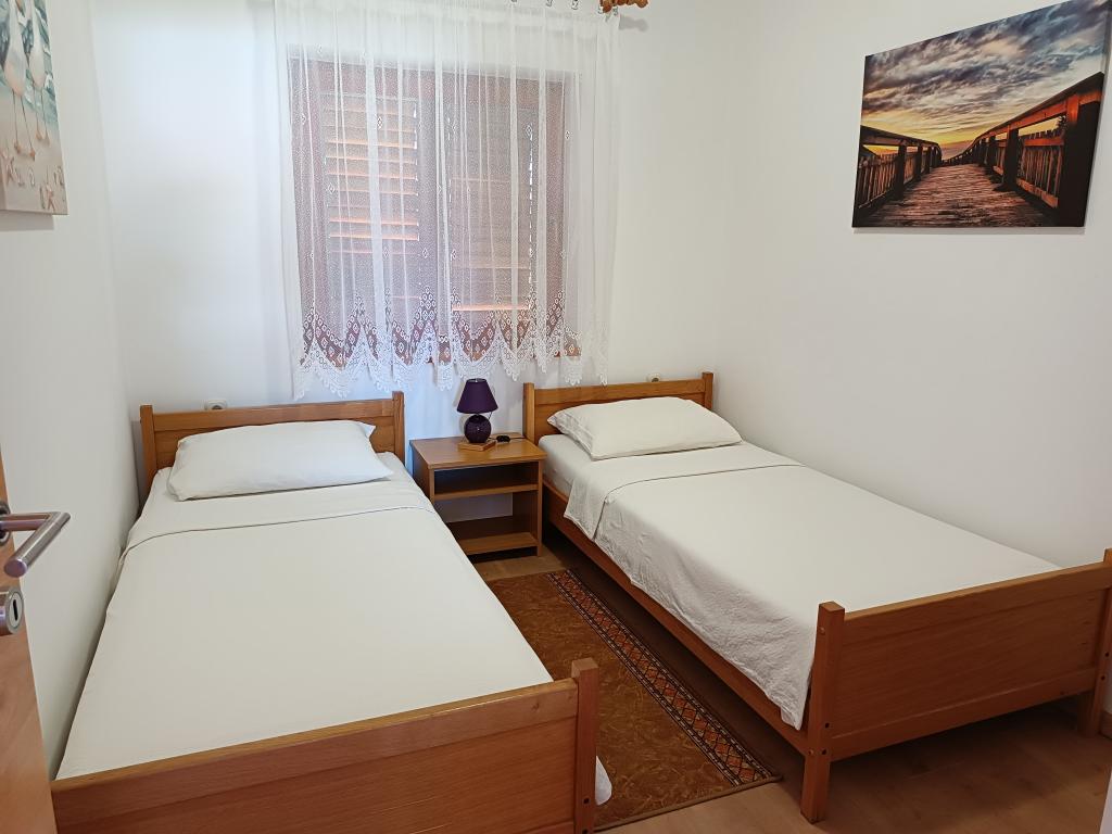 Wynajmujemy trzy identyczne, większe, klimatyzowane apartamenty dla 4 osób i jeden mniejszy apartament dla dwóch osób. Jeden większy znajduje się na parterze po lewej stronie, a dwa na pierwszym piętrze. Mniejszy znajduje się na parterze po prawej stronie. Większe apartamenty mają dwie sypialnie i pokój dzienny, podczas gdy mniejsze apartamenty mają jedną sypialnię i pokój dzienny. Każde mieszkanie ma osobne wejście i taras o powierzchni 12 metrów kwadratowych. W apartamentach otrzymujesz całą pościel i naczynia do gotowania oraz serwowania posiłków i napojów. Goście proszeni są o przywiezienie własnych środków do mycia i wycierania naczyń, a także ręczników do łazienki i artykułów do higieny osobistej. Najbliższa plaża (Žitna uvala) oddalona jest o 100 m. Na zewnątrz plaża jest żwirowa, a w wodzie piasek. Jest odpowiedni dla dzieci. Wzdłuż plaży biegnie długa promenada i ścieżka rowerowa. Na plaży znajduje się kilka restauracji i lodziarnia. W promieniu 150-250 metrów znajduje się sklep owocowy, piekarnia, kilka sklepów spożywczych oraz sklepy ze sprzętem plażowym. Nasza ulica nie jest zatłoczona. Korzystają z niego wyłącznie najemcy i goście. Jest utwardzona i posiada oświetlenie publiczne.