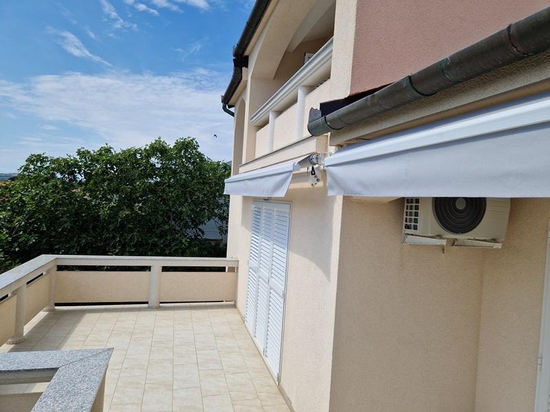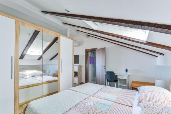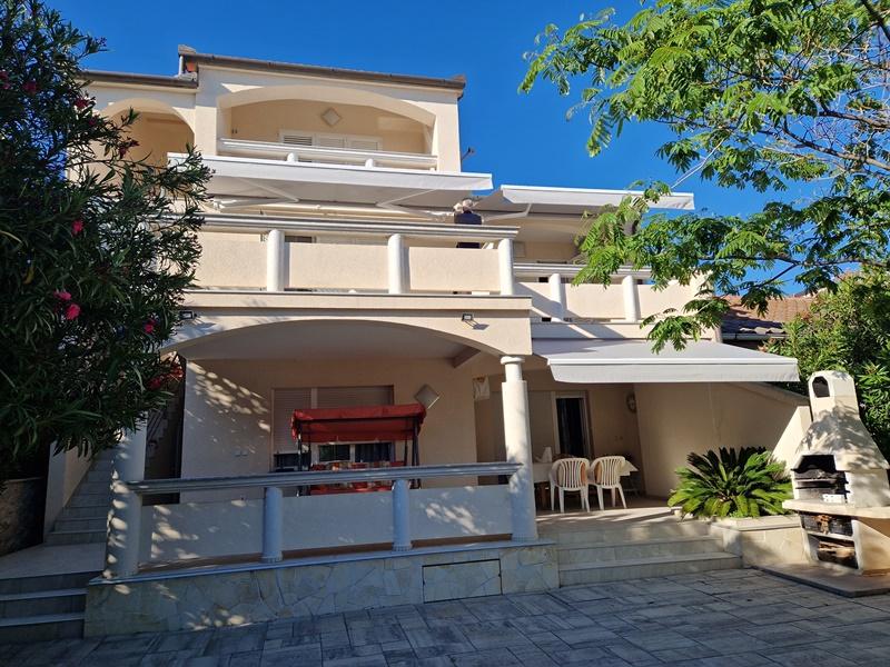 Wynajmuję niedawno odnowione i nowocześnie urządzone apartamenty w południowej, spokojnej części wyspy Vir. Obiekt znajduje się 5 minut spacerem od plaży, w otoczeniu zieleni, przy głównej drodze, zapewniając spokojny i komfortowy wypoczynek z rodziną i przyjaciółmi. Obiekt ma 2 oddzielne jednostki: 1. Apartament 4 gwiazdki dla 6 osób (4 2) o powierzchni 75 m2 i tarasem o powierzchni 27m2. Mieszkanie zajmuje całe 1. piętro i obejmuje 2 sypialnie z 3 i 2 łóżkami, kuchnię z jadalnią, salon (z sofą, która zamienia się w dodatkowe łóżko) oraz 3 łazienki z prysznicem. Z salonu i kuchni są 2 wyjścia na duży taras. 2. Studio apartament 3 gwiazdki dla 4 osób o powierzchni 37 m2, znajdujące się na II piętrze. Posiada salon z kuchnią i jadalnią, sypialnię, łazienkę i zadaszony taras. Z salonu i tarasu roztacza się piękny widok na morze i okolicę, która jest idealnym miejscem na przyjemne wakacje. Parking przed domem i prysznic na zewnątrz.