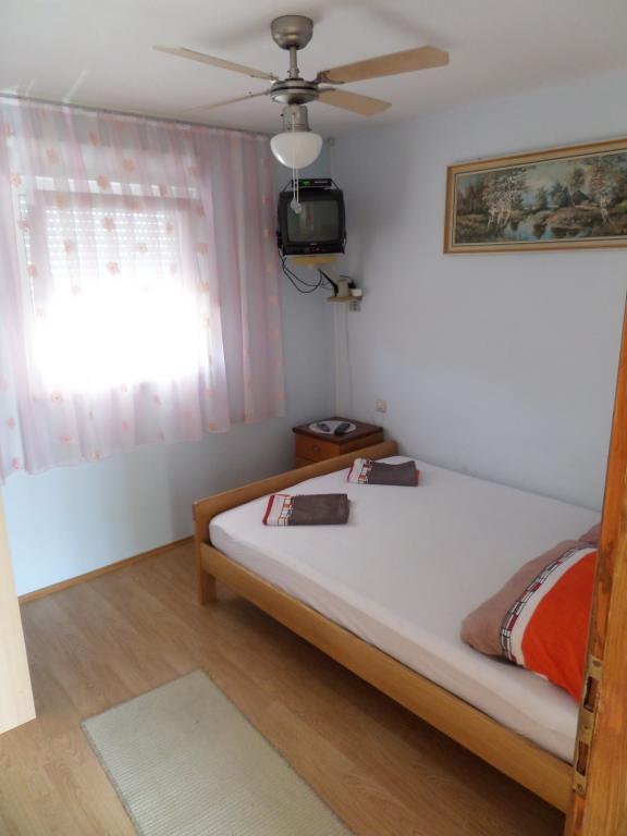 Dom składa się z 4 lokali mieszkalnych, po 2 na piętrze. Do wynajęcia są łącznie 3 apartamenty, 2 na piętrze i 1 w piwnicy. Wszystkie są identyczne i posiadają 2 sypialnie, taras, hol, w pełni wyposażoną kuchnię oraz łazienkę. Każdy apartament wyposażony jest w telewizor LCD z kanałami satelitarnymi i klimatyzację. Do dyspozycji Gości jest grill oraz miejsce do siedzenia na podwórku. Każdy apartament posiada również prywatny taras/balkon. Pobliskie plaże są w większości kamieniste, ale woda ma drobny piasek. Szczególnie polecane rodzinom z dziećmi. Klimatyzacja dodatkowo płatna 1 €/godzina.