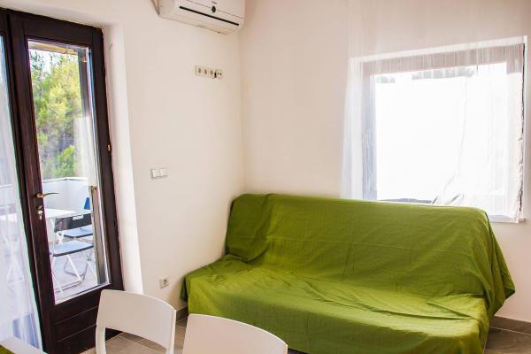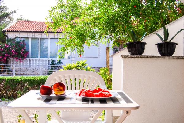 Apartament z kuchnią, sypialnią i dużym tarasem, parkingiem, klimatyzacją, w cichej okolicy otoczonej lasem sosnowym, 150 m od kamienistej plaży z lasem sosnowym. Idealny, jeśli chcesz uciec od tłumów i hałasu. Mieszkanie znajduje się na pierwszym piętrze domu z osobnymi schodami i bez innych gości na górze.