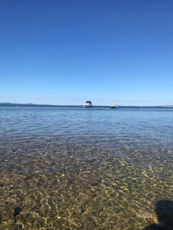 Piękne miejsce, bardzo sympatyczni i mili właściciele. Mieszkanie czyste, piękne, duży taras w cieniu. Morze jest kilka metrów dalej, czyste i ciepłe. Kawałek dalej piaszczystym dnem. Restauracja za rogiem, piekarnia kilka minut stąd, Maxi konzum też. Bardzo zadowolony. Polecamy.