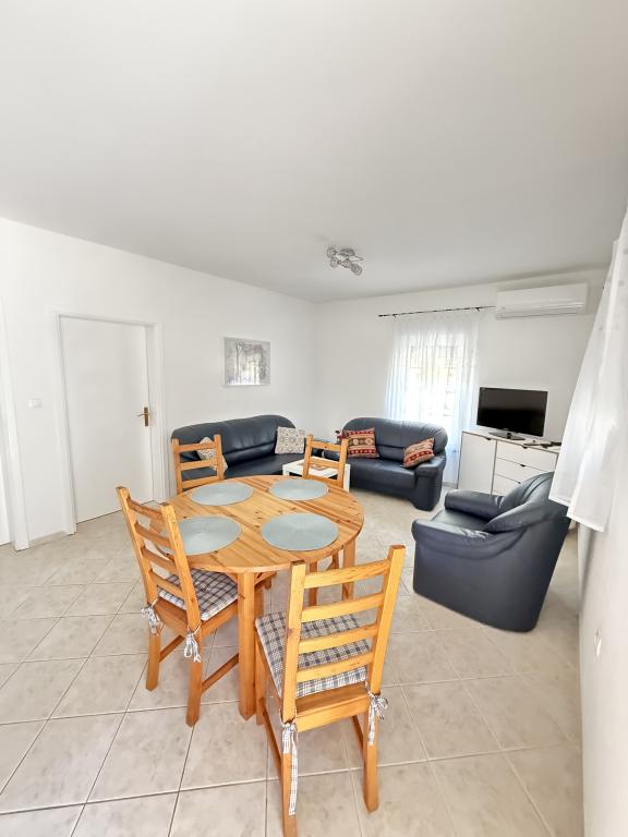 Na wyspie Vir, zaledwie 150 metrów od morza, znajdują się dwa apartamenty dla maksymalnie 5 osób. Apartamenty są nowocześnie wyposażone, klimatyzowane i zapewniają komfortowy pobyt. Każdy apartament posiada własny taras z częścią wypoczynkową, a na ogrodzonym podwórku Goście mają do dyspozycji prywatny parking i grill. Bliskość morza i plaży, a także praktyczne udogodnienia, sprawiają, że apartamenty te są idealnym wyborem dla rodzin i małych grup przyjaciół poszukujących zakwaterowania w bezpośrednim sąsiedztwie wszystkich głównych udogodnień. Apartamenty są odpowiednie dla maksymalnie 5 osób. Składają się z dwóch sypialni, łazienki z prysznicem i pralką oraz w pełni wyposażonej kuchni połączonej z salonem. Do dyspozycji Gości jest również taras z częścią wypoczynkową, idealny na relaks i wypoczynek na świeżym powietrzu. Apartamenty są klimatyzowane i nowocześnie urządzone, idealne na rodzinne wakacje lub pobyt w mniejszym gronie przyjaciół.