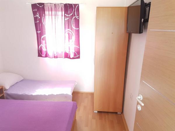 Apartament znajduje się w Vir na spokojnej części wyspy, w otoczeniu sosnowego lasu z dala od Zadaru 26 km i 33 km od lotniska w Zadarze. Parking na podwórku, korzystanie z grilla i pieczenia. Apartament obejmuje: pokój, kuchnia, łazienka, taras z widokiem na morze, telewizor, radio, wi-fi i klimatyzację. Mieszkanie jest z dala od pięknej naturalnej plaży z 5 minut spacerem. Plaza jest odpowiedni dla osób pływających i nie umiejących pływać. Jest otoczony ananasową sumą.
