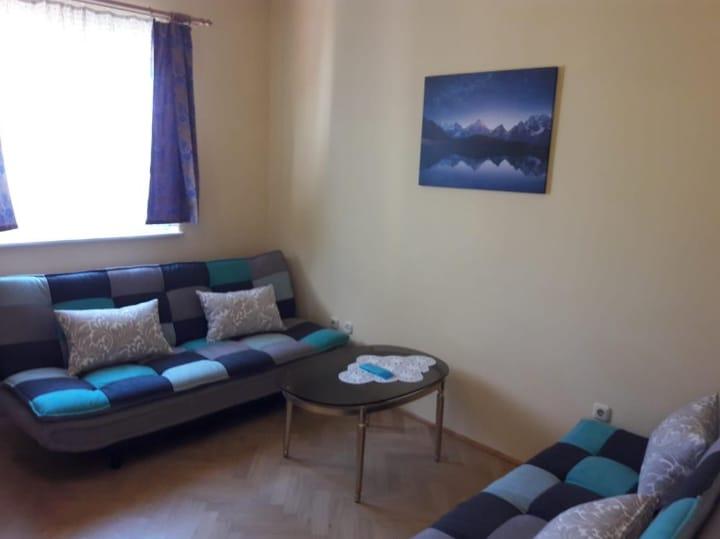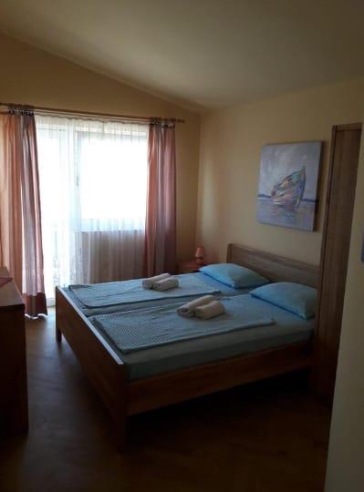 Wynajmę mieszkanie ok. 90 m2 na pierwszym piętrze z pięknym widokiem na las sosnowy. Mieszkanie posiada dwa balkony, dwie łazienki, dwie sypialnie, duży salon, przedpokój i kuchnię. Posiada również duże podwórko i murowany grill na podwórku i parking. Mieszkanie jest nowo umeblowane. Posiada klimatyzację, bezpłatny dostęp do internetu (Wi-Fi) oraz TV.