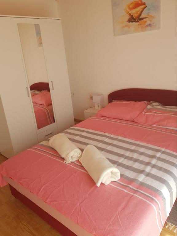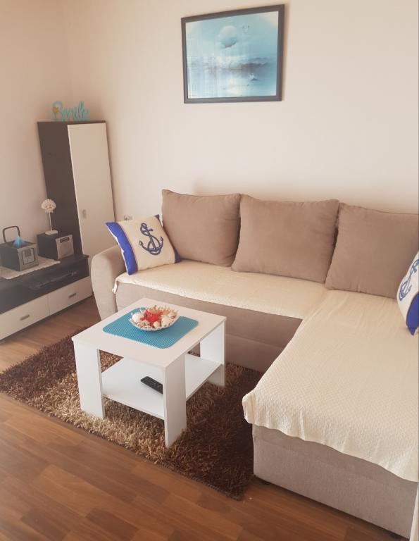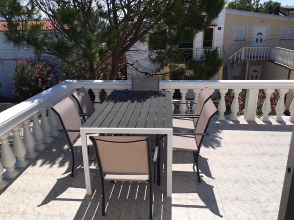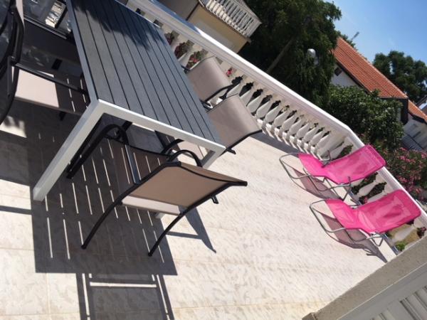 Duży trzypokojowy apartament 56 m2 30 m2 taras w całym domu. Jest odpowiedni dla 1 większej lub 2 mniejszych rodzin. Znajduje się 80 metrów od zatoki plaży Ulica jest cicha, wszystkie obiekty są w pobliżu.