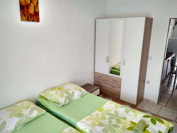 Apartamenty doskonałe, bardzo zadbane i dobrze wyposażone. Właściciele są bardzo mili, gościnni i pomocni. Do dyspozycji leżaki i parasol plażowy. Z jednej strony apartamentu taras a z drugiej balkon (wybierasz sam czy poranna kawa na słońcu czy w cieniu) obydwa z pięknym widokiem na morze i góry. Okolica wszędzie blisko: sklep, resteuracja, piekarnia i lody. Do dyspozycji grill. My jesteśmy bardzo zadowoleni z wakacji. Polecam!