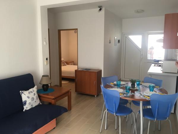 Apartamenty Nono mam umieszczone w centrum miasta, 150 metrów od pięknej, kamienistej i piaszczystej plaży Jadro. W pobliżu znajdują się sklepy, rynek, targ rybny, kościół, apteka, poczta, restauracje, kawiarnie i punkt wyjścia wycieczek nabrzeże dla łodzi na wodach Zadaru. Położenie mieszkania jest idealna na spacer wzdłuż plaży i zwiedzanie miasta bez samochodu. Nowoczesne apartamenty zaspokoi Twoje potrzeby komfortu i beztroskiego wypoczynku. Na przyjemny pobyt do Państwa dyspozycji grill, altanka oraz zadaszony parking. Odnowione apartamenty wyposażone są w klimatyzację, telewizję satelitarną, lodówkę, kuchenkę mikrofalową, toster, radio i nowoczesne meble.