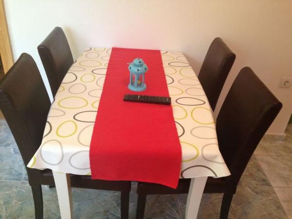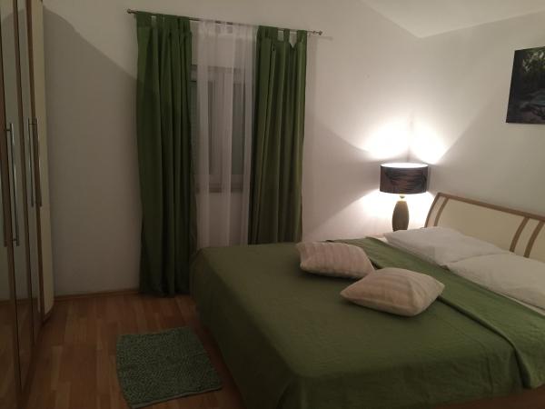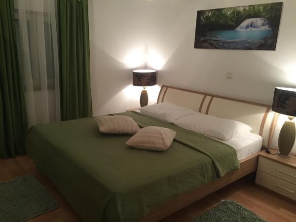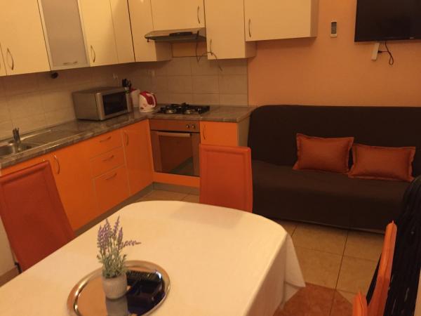 Apartamenty składają się z 2 sypialni z podwójnym łóżkiem, pokój dzienny, łazienka, balkony (tarasy) Mieszkanie jest wyposażone w naczynia, pościel, ręczniki, żelazko, suszarka do włosów, mikser, klimatyzacja, kuchenka mikrofalowa, kuchenka, grill, parking. Odległość do sklepów 10 m, do plaży 100 m. Mieszkanie znajduje się w spokojnej okolicy, przyjdź i sprawdź, czekamy na Ciebie :))