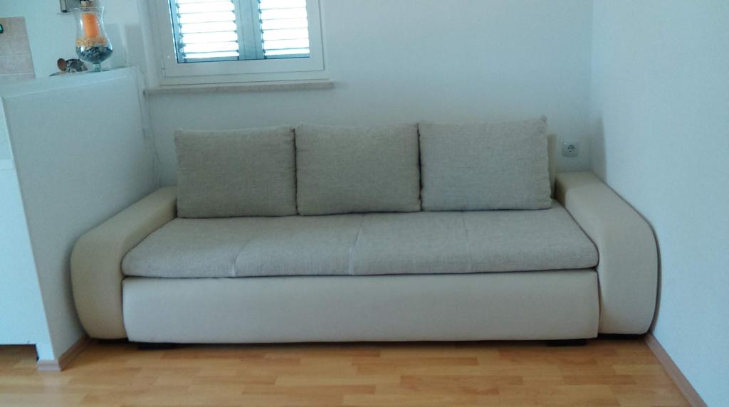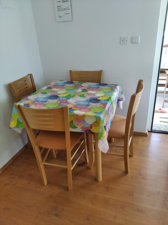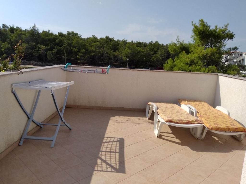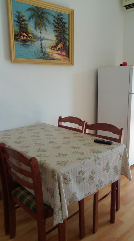 Apartament znajduje się na pierwszym piętrze budynku w pierwszym rzędzie do morza, obok portu rybackiego w zatoce Brdonja. Mieszkanie jest odpowiednie dla rodziny, posiada sypialnię, przedpokój z kuchnią, 4 łóżka, duży taras, leżaki, 2 wspólne rowery. Pościel i ręczniki kuchenne są wliczone w cenę.