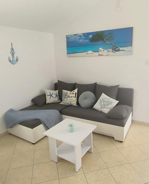 Witamy w naszym domu na pięknej wyspie Vir! Oferujemy dwa komfortowe apartamenty i jedno studio, idealne na spokojny i relaksujący wypoczynek. Nasz obiekt położony jest zaledwie 150 metrów od krystalicznie czystego morza, przy spokojnej, rodzinnej uliczce o niewielkim natężeniu ruchu, idealnej dla rodzin z dziećmi i wszystkich, którzy chcą uciec od miejskiego zgiełku. Dom jest otoczony kolorowymi, zadbanymi kwiatami, które zapewniają poczucie ciepła i domowej atmosfery. Na miejscu dostępny jest bezpłatny prywatny parking, dzięki czemu nie musisz martwić się o swój pojazd podczas pobytu. W pobliżu znajduje się supermarket i piekarnia, dzięki czemu podczas wakacji możesz łatwo i szybko zrobić zakupy. Centrum Viru oddalone jest o 3 km, a każdego wieczoru organizowane są tam zabawy dla dzieci i dorosłych – idealne miejsce dla tych, którzy chcą miło zakończyć dzień. Wyspa Vir znana jest z licznych pięknych plaż, ukrytych zatoczek i krystalicznie czystego morza – idealnego do zwiedzania i cieszenia się słonecznymi dniami. W pobliżu znajduje się wiele atrakcji turystycznych, które idealnie nadają się na jednodniowe wycieczki: Piękne zabytkowe miasto Nin oddalone jest o zaledwie 10 kilometrów Muzeum Narodowe w Zadarze oddalone jest o 25 km Słynna instalacja „Powitanie Słońca” w Zadarze oddalona jest o 26 km Lotnisko w Zadarze oddalone jest o 34 km Jeśli szukasz miejsca na prawdziwe wakacje, z dala od zgiełku, a jednocześnie blisko morza i ciekawych atrakcji - nasze apartamenty są dla Ciebie właściwym wyborem!