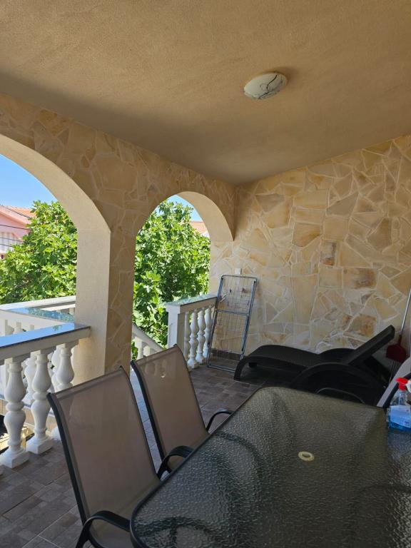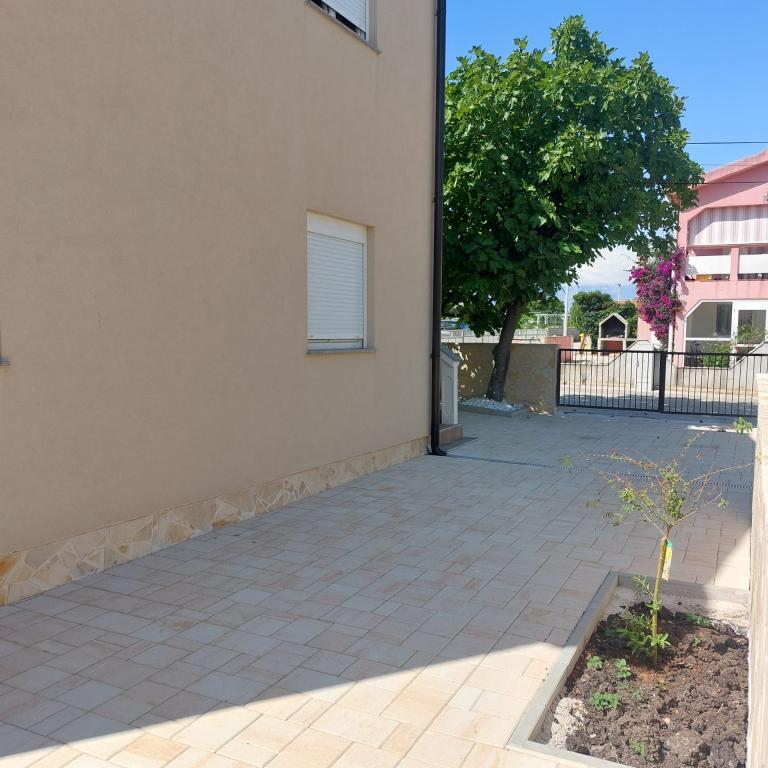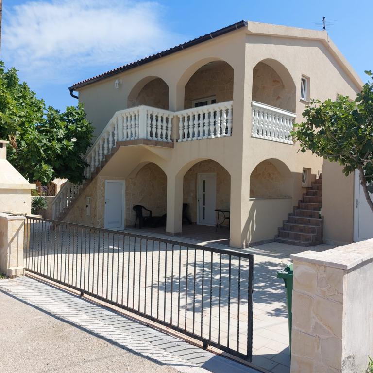 Do wynajęcia dwa apartamenty z przestronnymi tarasami w spokojnej części wyspy Vir. Odpowiednie dla par lub rodzin z dziećmi. Plaża i wszystkie niezbędne udogodnienia znajdują się 300m od budynku. Do każdego mieszkania przynależą dwa miejsca parkingowe oraz możliwość korzystania z piekarnika.