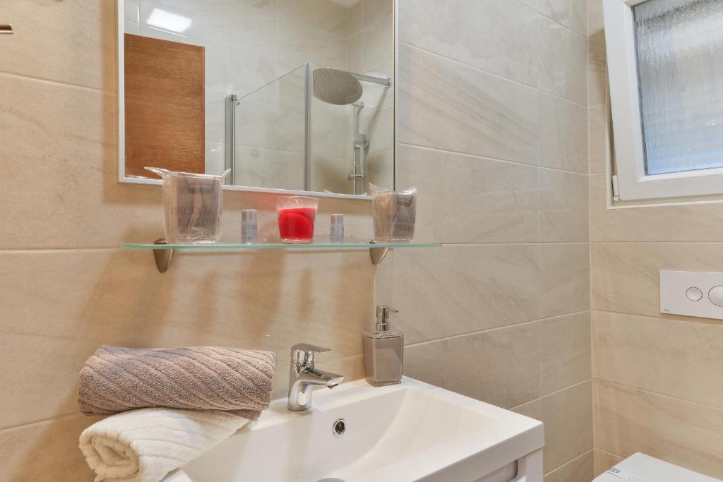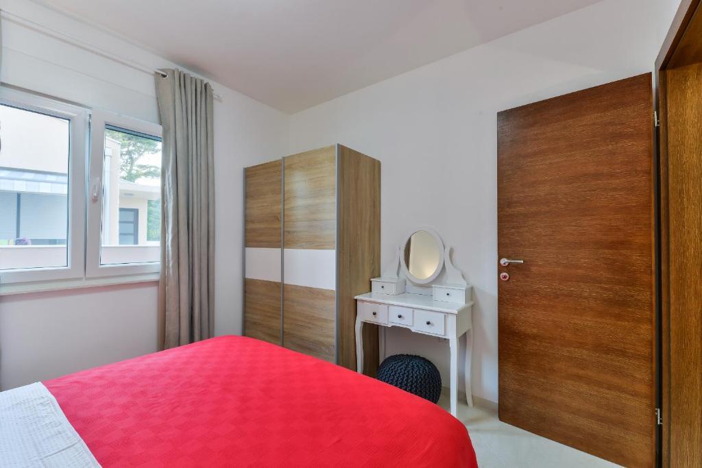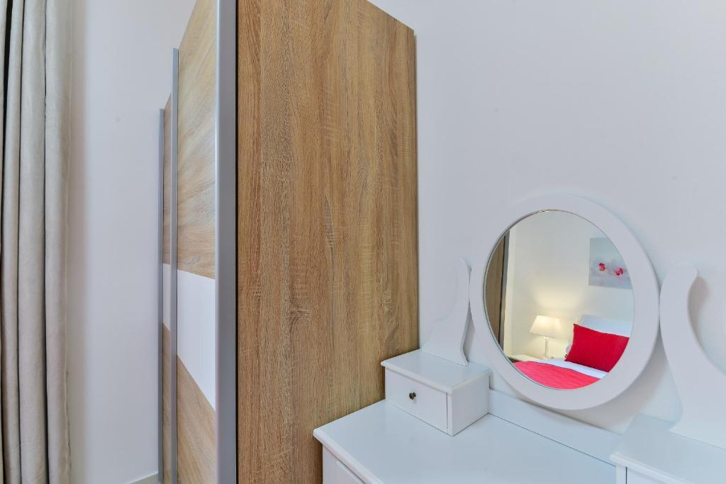 W centrum pięknej wyspy o trzech twarzach, wyspie Vir, znajdują się apartamenty Velić, tylko 30 minut jazdy od lotniska w Zadarze, i dostępna jest usługa TAXI. Apartamenty zostały zaprojektowane tak, aby zapewnić komfortowy i beztroski wypoczynek w cichym otoczeniu. Podwórko domu zapewnia bezpłatny parking, możliwość korzystania z grilla, jest ogrodzone i bezpieczne dla najmłodszych. W domu znajdują się 3 jednostki zakwaterowania. Na parterze znajdują się 2 komfortowe apartamenty z dwiema sypialniami oraz luksusowy apartament na piętrze z 3 tarasami. Atrakcyjna centralna plaża Jadro oddalona jest o zaledwie 15 minut spacerem, a nieco spokojniejsza plaża Lučica z widokiem na wyspę Pag o 10 minut spacerem. Supermarket, piekarnia, apteka i podobne obiekty znajdują się zaledwie 5 minut spacerem od hotelu.