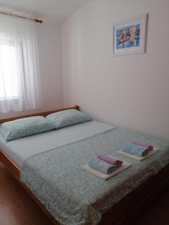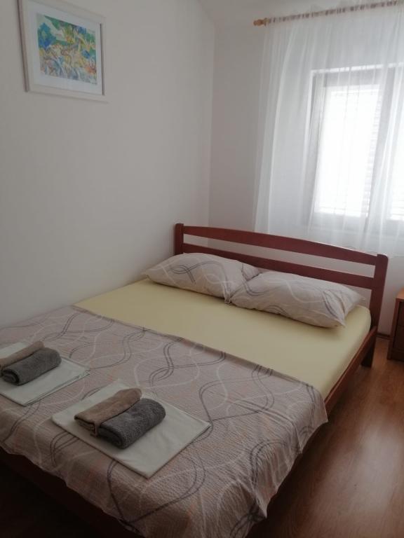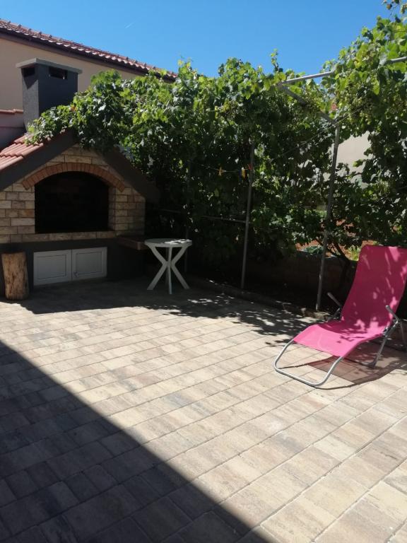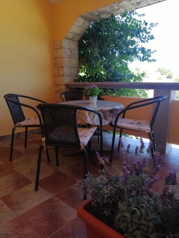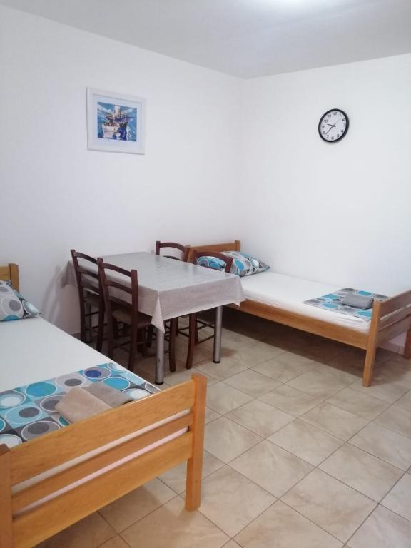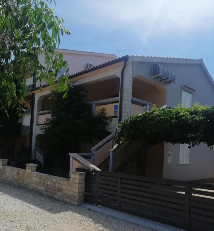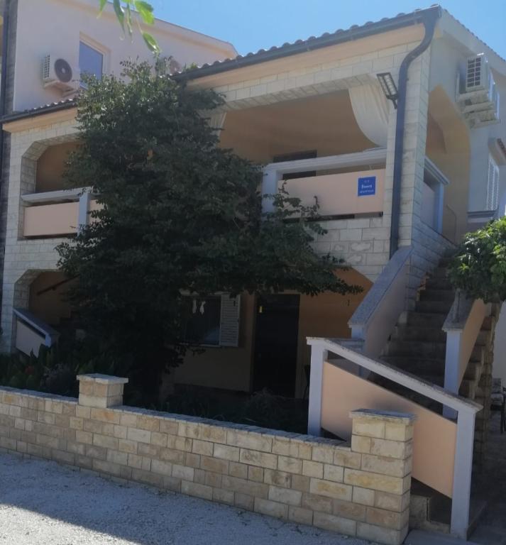 Wyspa Vir, osiedle Velika Slatina, wynajmujemy 2 apartamenty na pierwszym piętrze budynku z osobnymi wejściami, każdy dla 4 osób. Apartamenty położone są 350 metrów od morza (zagospodarowana plaża kamienista z kawiarnią), wyposażone są w klimatyzację, TV, bezpłatny nieograniczony dostęp do Internetu, grill na podwórku i strzeżony parking, każdy apartament ma własny taras.