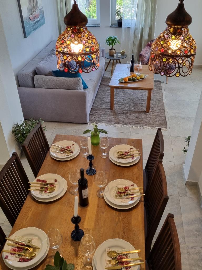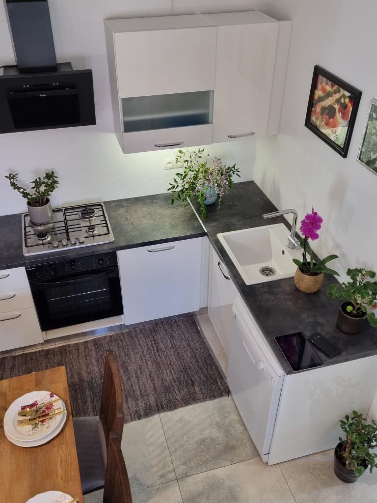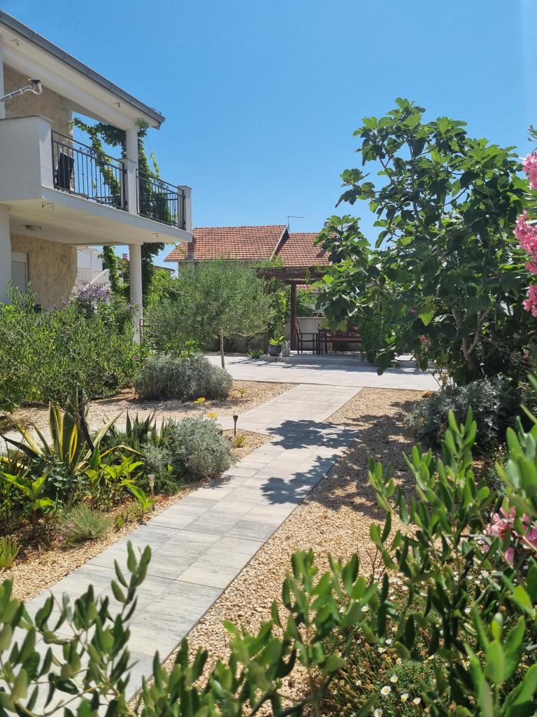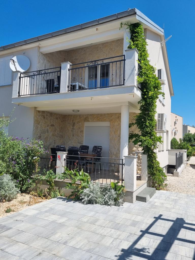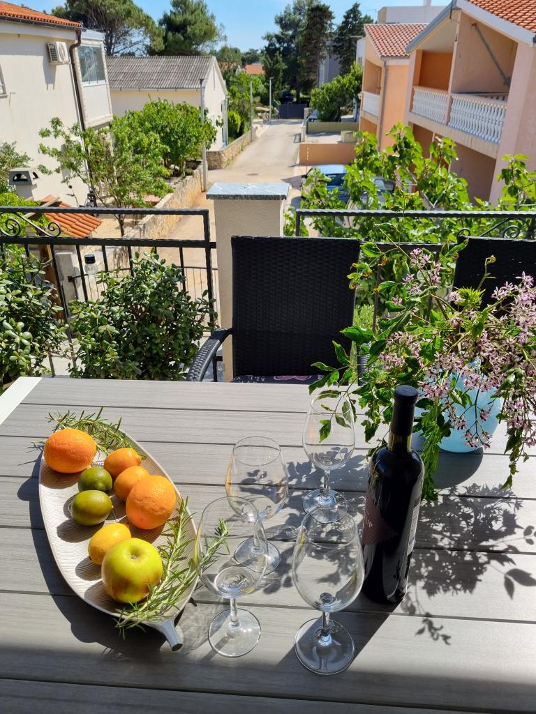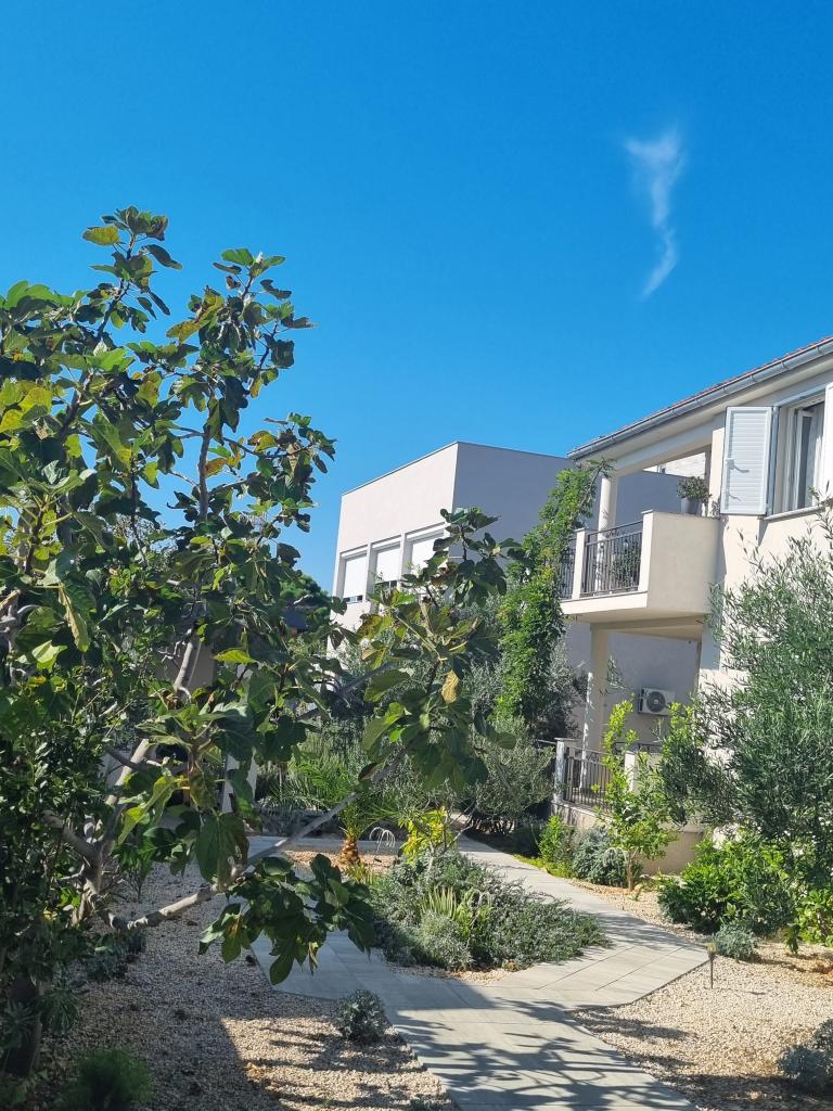 Zapraszamy do luksusowych apartamentów w Villa Emilia na Vir i pięknego zielonego ogrodu. Piękne przestronne tarasy po stronie południowej z widokiem na ogród i balkony po stronie północnej z widokiem na Velebit. W każdym apartamencie znajdują się dwie przestronne sypialnie, salon, w pełni wyposażona kuchnia ze zmywarką, piekarnikiem, kuchenką, mikrofalówką i lodówką. Łazienka wyposażona w pralkę. Żelazko i deska do prasowania. Villa Emilia na wyspie Vir znajduje się 300 metrów od morza i plaży LUKA na południu. Parking dla każdego apartamentu.