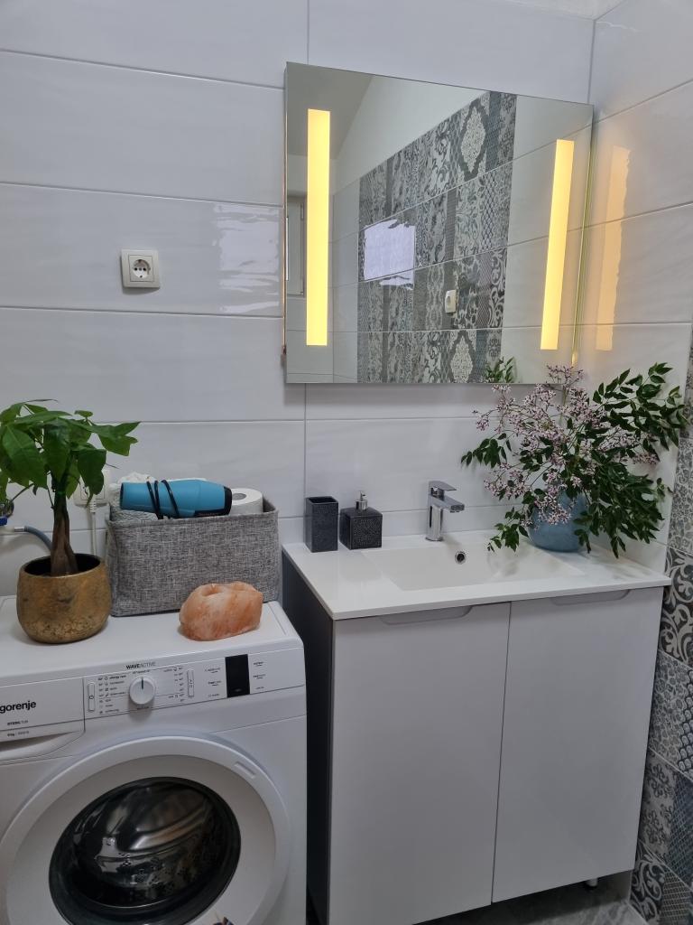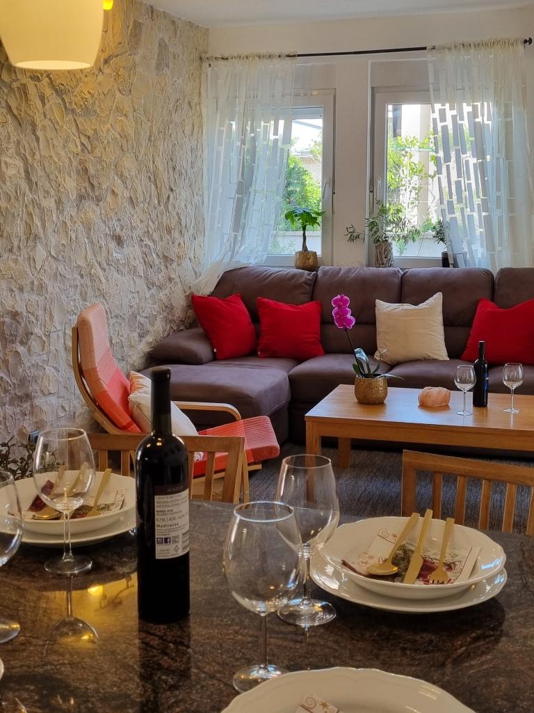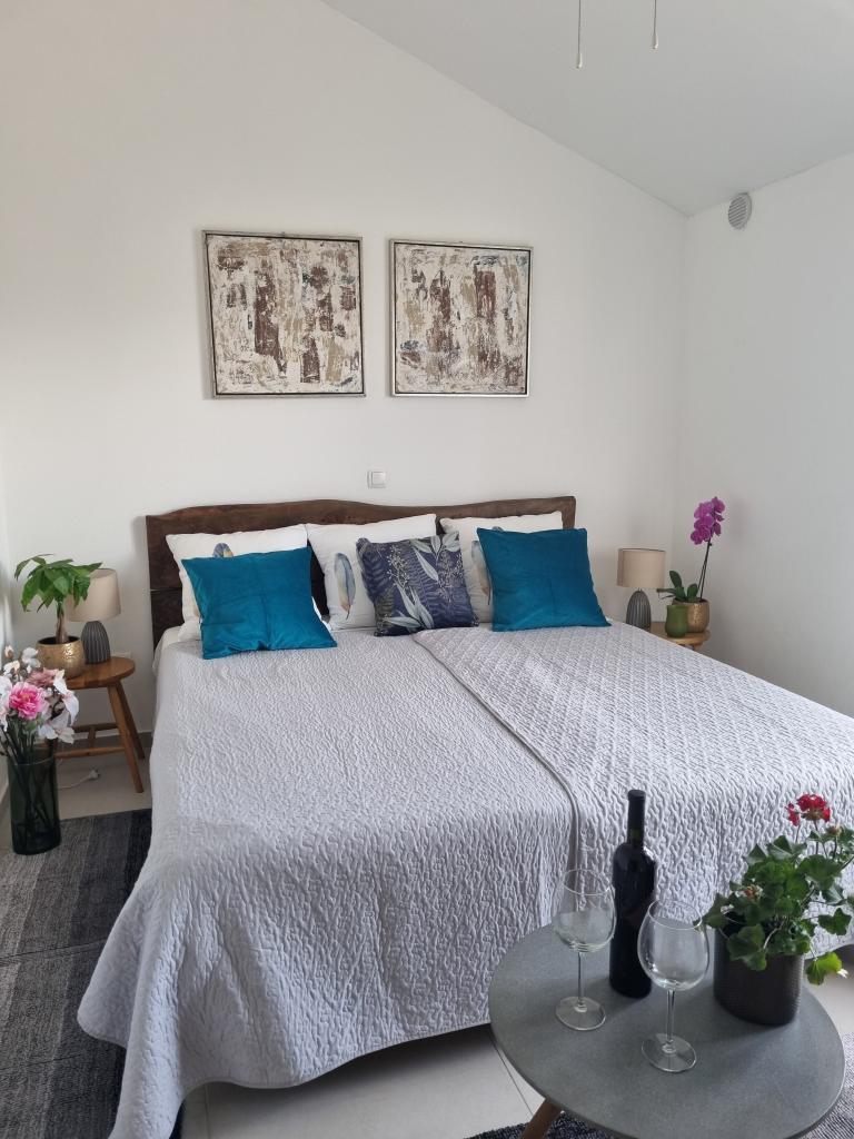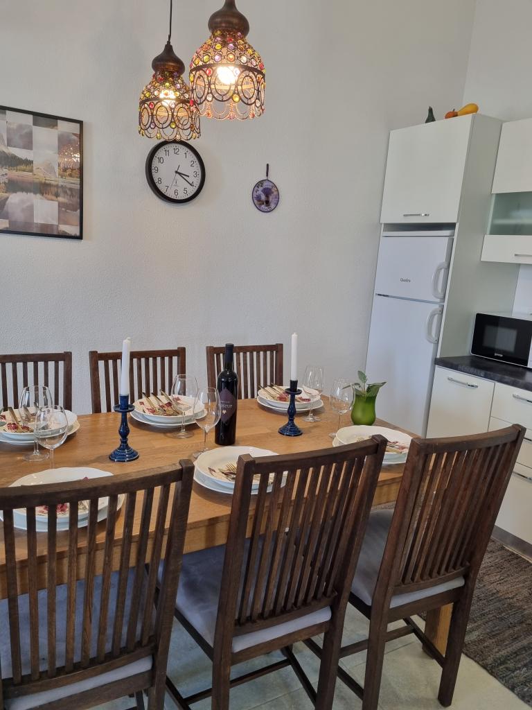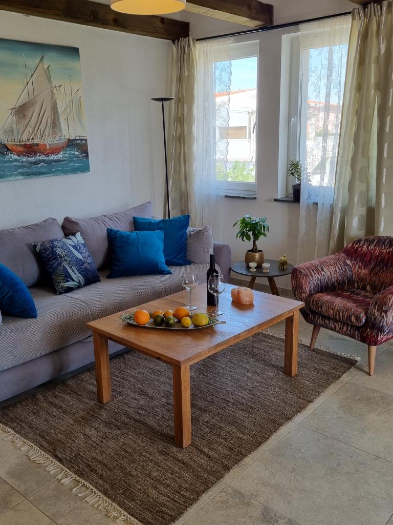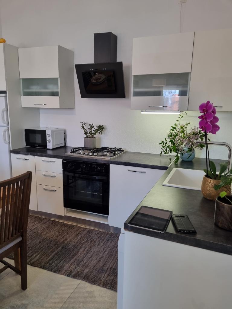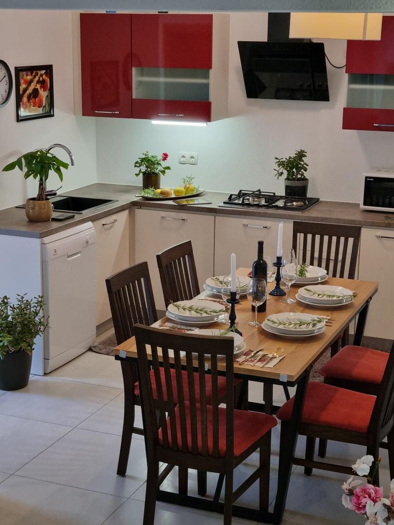 Zapraszamy do luksusowych apartamentów w Villa Emilia na Vir i pięknego zielonego ogrodu. Piękne przestronne tarasy po stronie południowej z widokiem na ogród i balkony po stronie północnej z widokiem na Velebit. W każdym apartamencie znajdują się dwie przestronne sypialnie, salon, w pełni wyposażona kuchnia ze zmywarką, piekarnikiem, kuchenką, mikrofalówką i lodówką. Łazienka wyposażona w pralkę. Żelazko i deska do prasowania. Villa Emilia na wyspie Vir znajduje się 300 metrów od morza i plaży LUKA na południu. Parking dla każdego apartamentu.