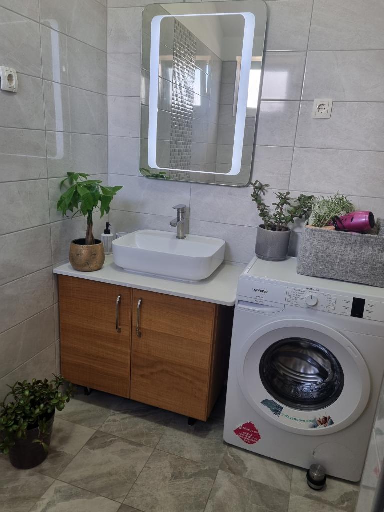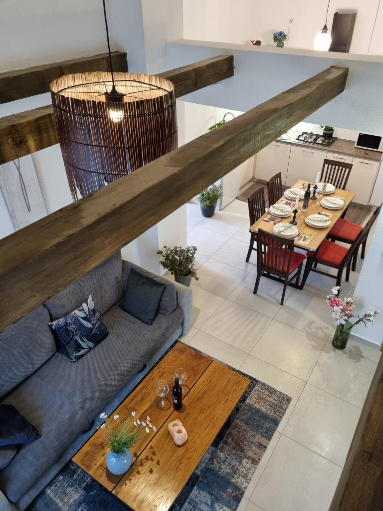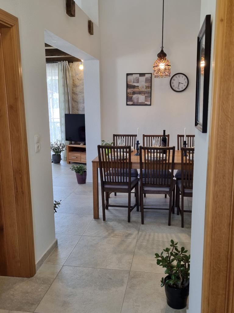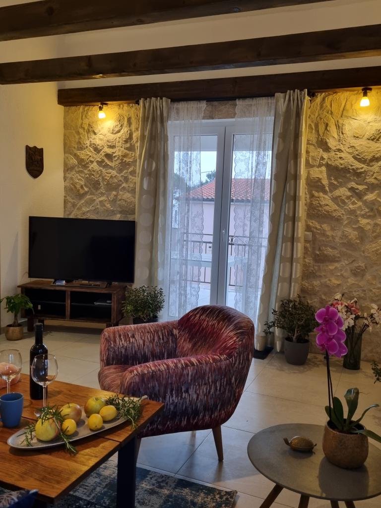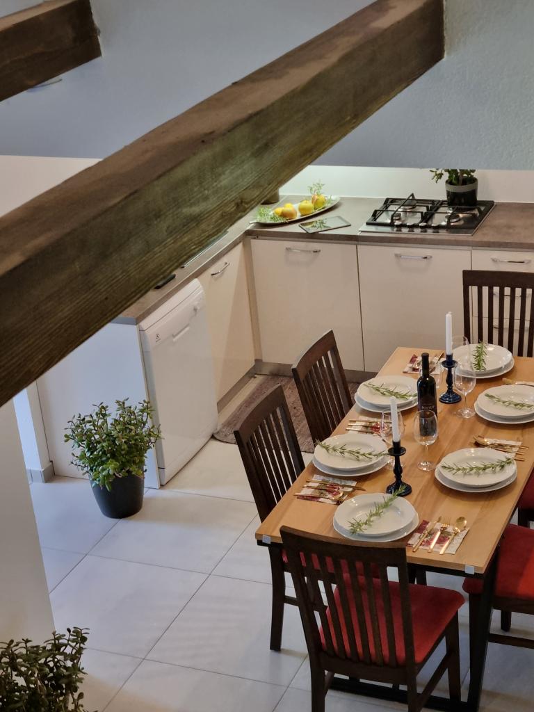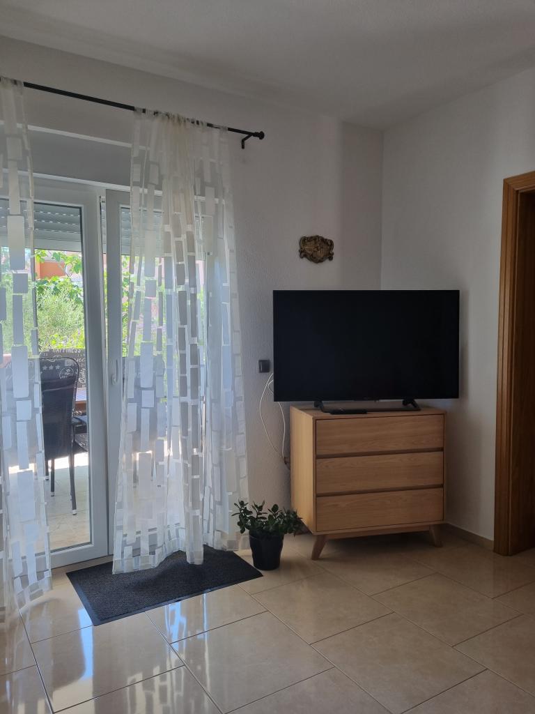 Zapraszamy do luksusowych apartamentów w Villa Emilia na Vir i pięknego zielonego ogrodu. Piękne przestronne tarasy po stronie południowej z widokiem na ogród i balkony po stronie północnej z widokiem na Velebit. W każdym apartamencie znajdują się dwie przestronne sypialnie, salon, w pełni wyposażona kuchnia ze zmywarką, piekarnikiem, kuchenką, mikrofalówką i lodówką. Łazienka wyposażona w pralkę. Żelazko i deska do prasowania. Villa Emilia na wyspie Vir znajduje się 300 metrów od morza i plaży LUKA na południu. Parking dla każdego apartamentu.